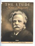 Monthly magazine aimed at all musicians, from the novice through the serious student to the professional, The Etude printed articles on popular subjects and more scholarly musical subjects (including history, literature, gossip, and politics). 10.5" x 13.25", 70 pages, B&W Cover price $0.25.