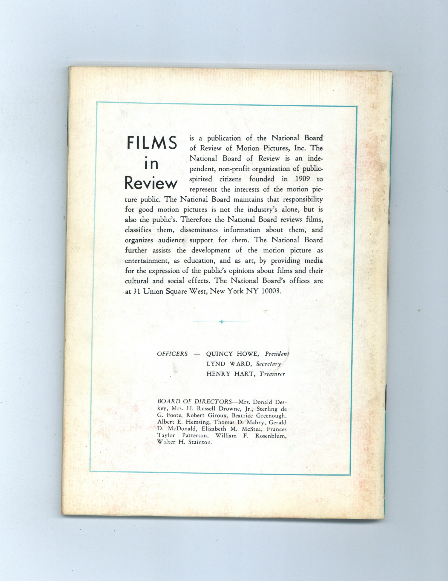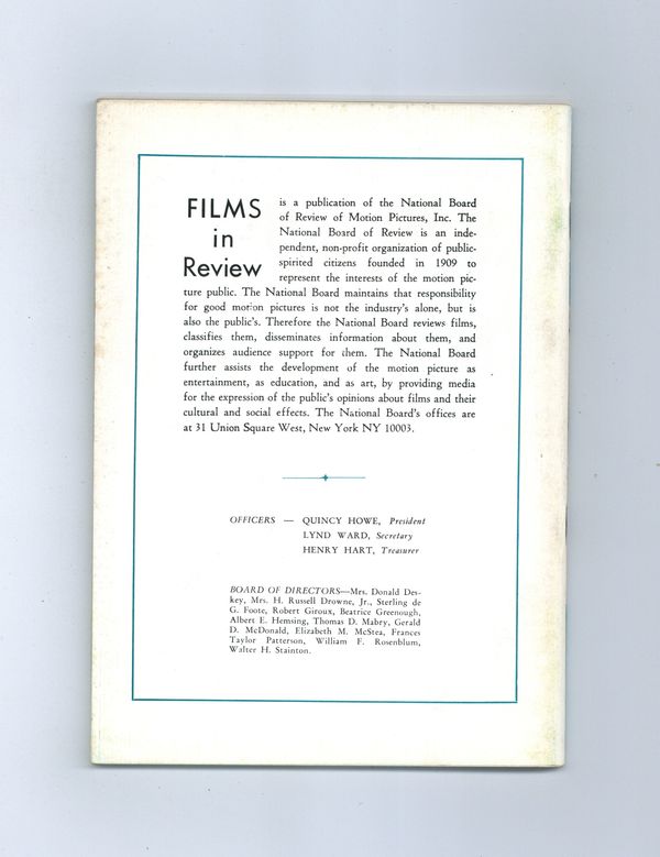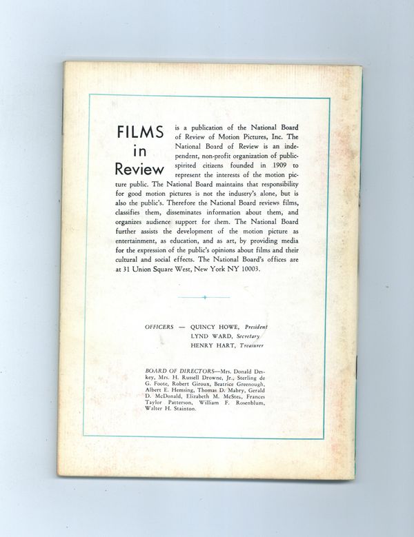 Published Nov 1968 by National Board of Review of Motion Pictures Inc..$10.00If you add this item to your want list, we will email you when it becomes available.