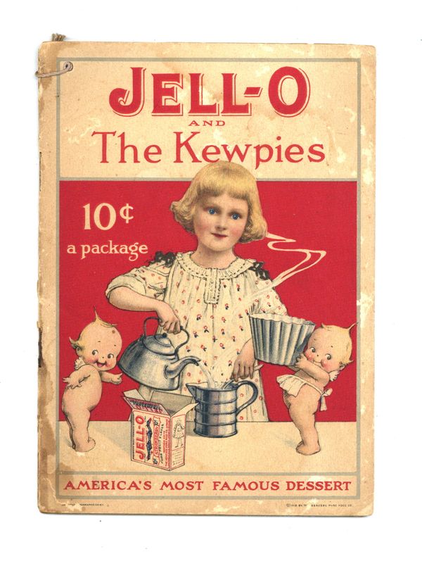 1915 Genesee Pure Food Co. Illustrated by Rose O'Neill. Jell-O and The Kewpies team up to show you how make delicious Jell-O to surprise your friends. 4.5" x 6", 20 pages, Color.