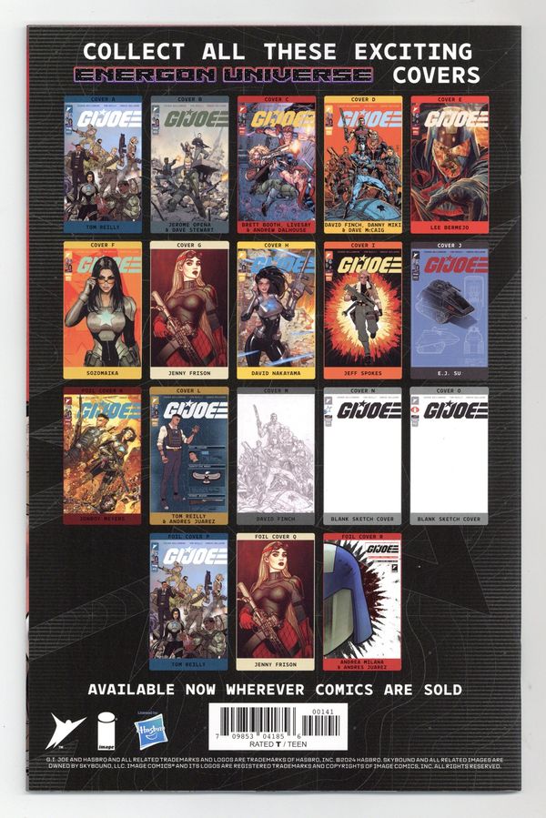 Starts Feb 9 Limited 1 for 500 Retailer Incentive Variant Cover. Written by Joshua Williamson. Art by Tom Reilly, Jordie Bellaire. Cover by David Finch. SERIES PREMIERE THE BIGGEST COMIC BOOK LAUNCH OF THE DECADE! Conrad Hauser, Codename DUKE, has assembled a special force known as G.I. Joe to battle the rising power of the mysterious COBRA in the aftermath of the Autobots and Decepticons' arrival on Earth. But the enigmatic Cobra Commander has unleashed the power of Energon like never before! Featuring many familiar faces and the first appearance of an ALL NEW character, this is the comic that will change everything you think you know about G.I. Joe…and that's only half the surprises in store from the chart-topping Energon Universe dream team of JOSHUA WILLIAMSON and TOM REILLY! 36 pages, full color. Rated T Cover price $4.99.