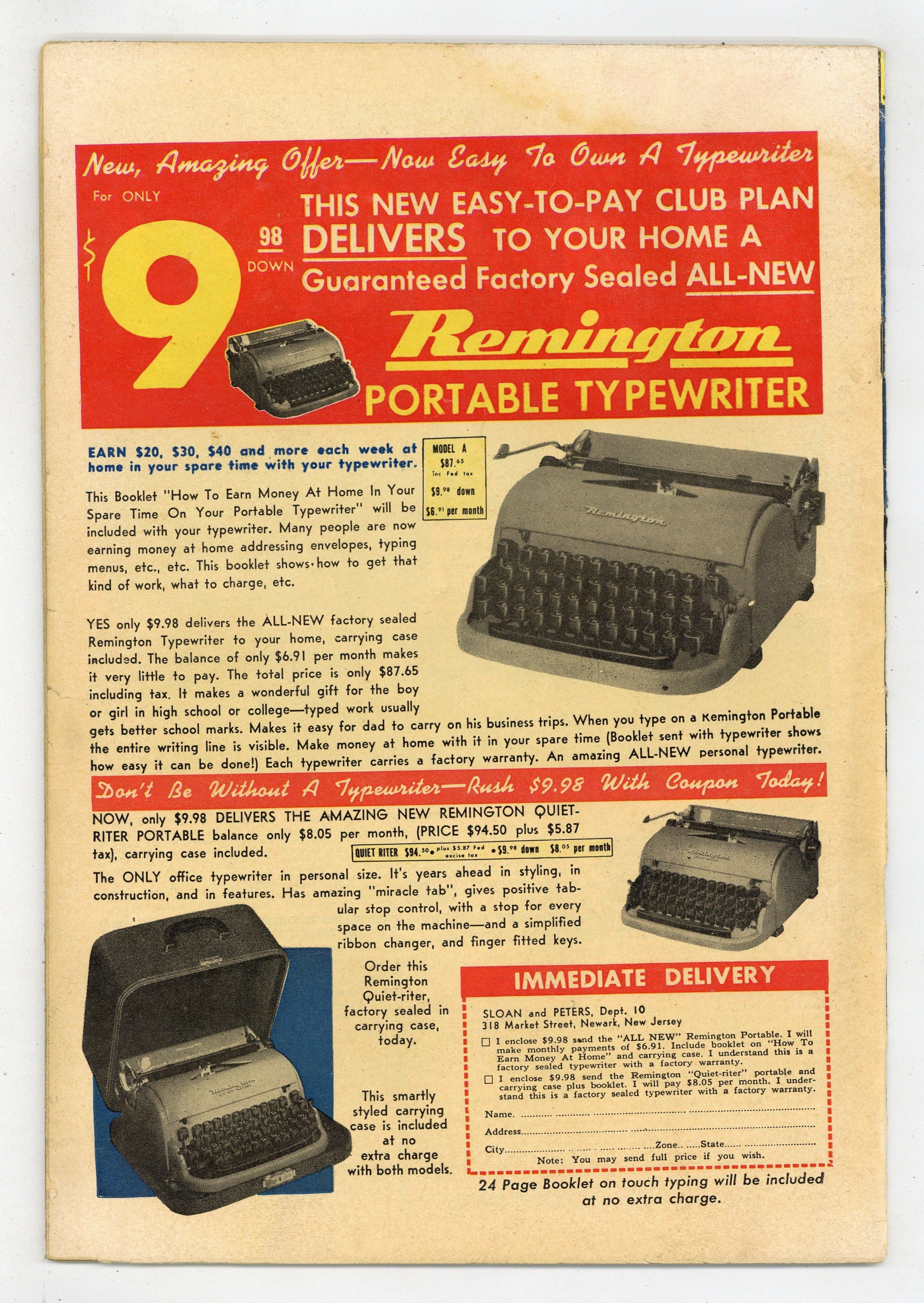Cover art by Bill Vigoda. "London Britches"; Cedric is a foreign exchange student from England that has come to Riverdale; Archie and Reggie don't like the way the girls give him all the attention, so they introduce him to Moose's girl Midge. "Soled Out"; Veronica gets Archie and Reggie to shine all her shoes; While shining them, the boys misunderstand a conversation between Veronica and Jughead and throw all her shoes in the pool. Untitled story, script and art by Bill Woggon; Katy enlists K.O. to help her alter a dress. From Hollywood article; Archie is pictured at a typewriter, and there are multiple small stories about Hollywood film gossip. "Fired With Courage," script and art by Joe Edwards; Wilbur and Slats try to prove who's a bigger hero to the girls by seeing who can stand the closest and longest to exploding fireworks. "For Better Or Voice"; Ferdie tries to show Suzie he can speak foreign languages just as well as Gregory. "The Football Fan," script and art by Joe Edwards; Bill wants to make Li'l jinx a football fan so he takes her to a game. 36 pgs., full color. Cover price $0.10.