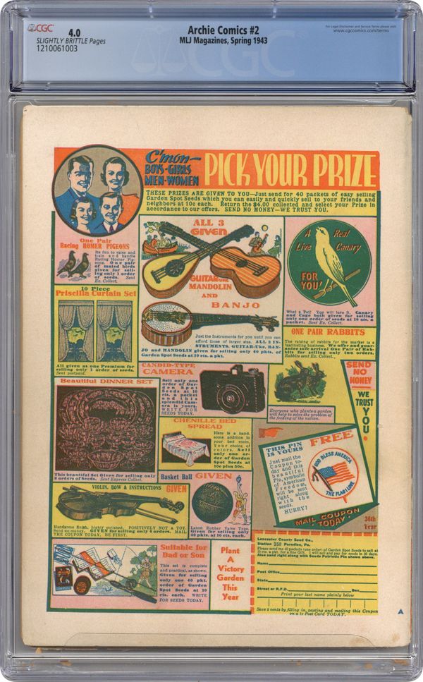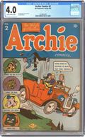 Cover by Bob Montana. Stories by unknown. Art by Bob Montana and Joe Edwards. Archie decides to join the rifle club but Betty thinks he's signing up for track in "Archie the Athlete"! Plus, Cubby the Bear stars in "The Mad Hypnotist"! Also, Archie goes to the history prom as a knight. He falls asleep and dreams of having to rescue Lady Veronica from the Mad Monk (Mr. Weatherbee) in "Sir Archibald of the Round Table"! Meanwhile, Bumbie the Bee-tective stars in "The Case of the Missing Page"! And Archie's homemade alarm wakes up everyone -- except him -- in "A Hunting We Will Go"! Plus, it's Squoimy the Woim's final appearance in "The Big Apple"! Also, Veronica causes chaos wherever she goes while she shops for new nail polish on the first Veronica solo story "Veronica Goes To Town"! And the final Judge Owl's Fables tale "The Fable of the Spider and the Fly"! Also, Archie, Mr. Andrews and Oscar go hunting for ducks in "Poor Fish"! Plus: Archie invents the electromagneticsupervelocitysodiumchlorideprojector and tests it on the Riverdale Chowder and Marching Society, thinking they are Nazis, in the 2-page text story "Archie's Secret Weapon" by Kobold Keep. 60 pages, full color. Cover price $0.10.