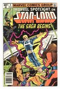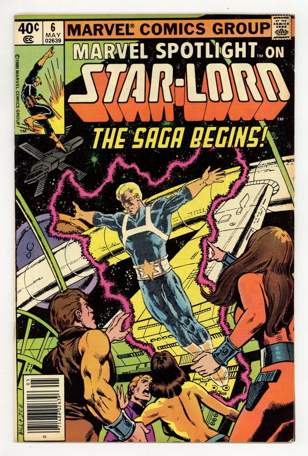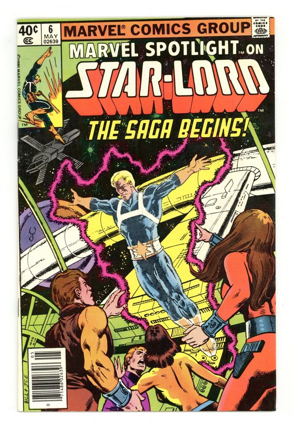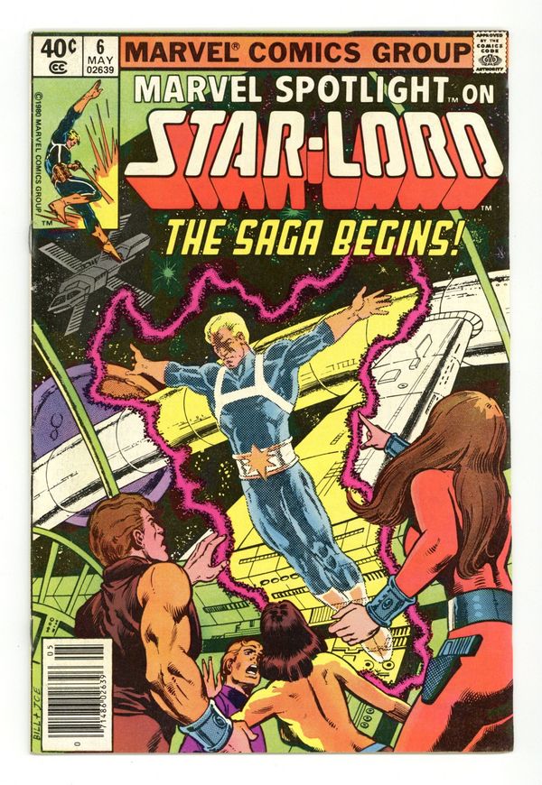 Tags: Anthology / Collection$50.00Newsstand Edition. Marvel Spotlight on Star-Lord - "The Saga of Star-Lord!" Written by Doug Moench. Art by Tom Sutton. Cover by Bill Sienkiewicz and Joe Rubinstein. The saga of Peter Quill, the invincible Star-Lord begins! 32 pages, FC. NOTE: Here's your chance to get caught up on the cosmic adventures of the hero that currently leads the Guardians of the Galaxy. - Odinson, Lone Star Comics Archivist Cover price $0.40.