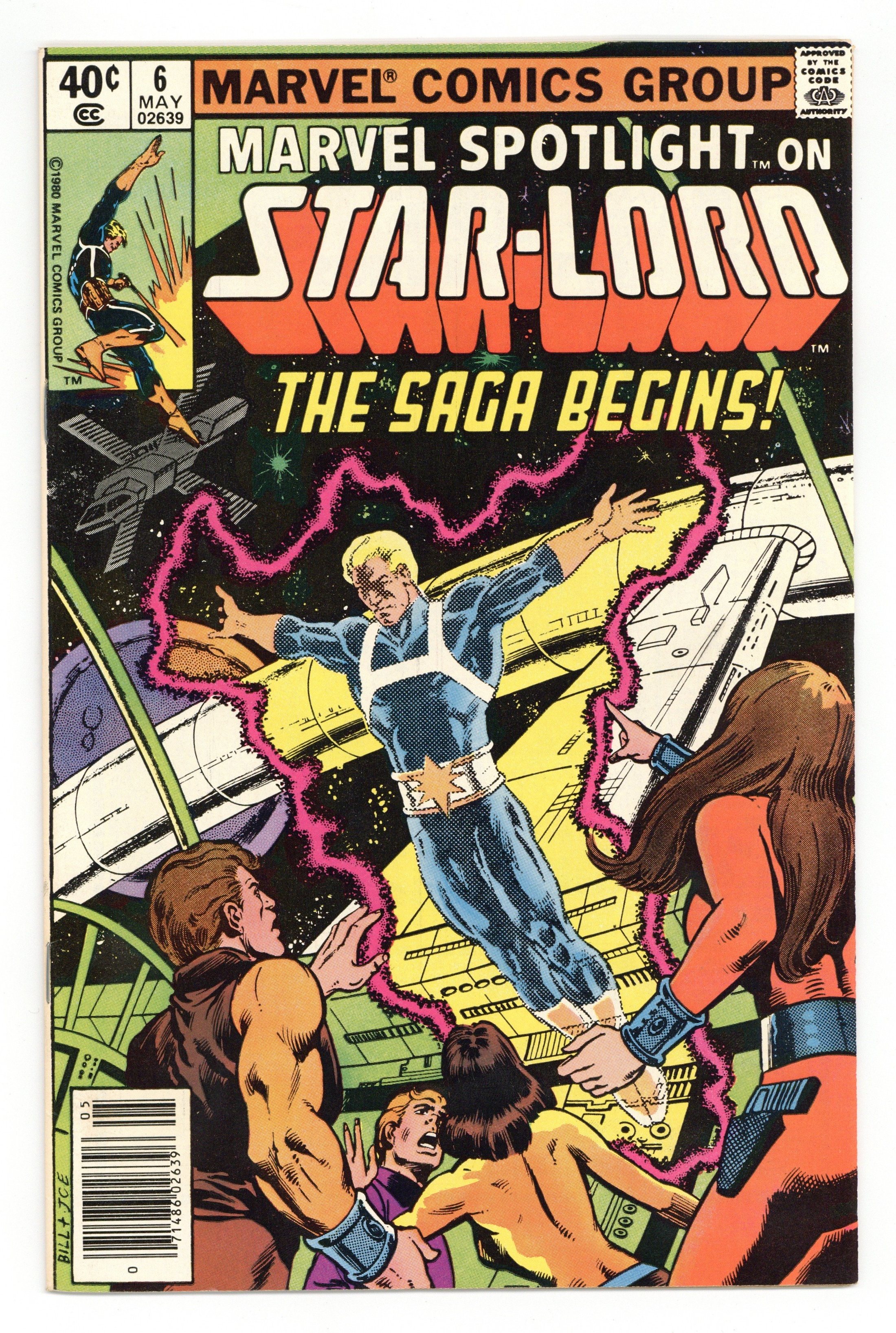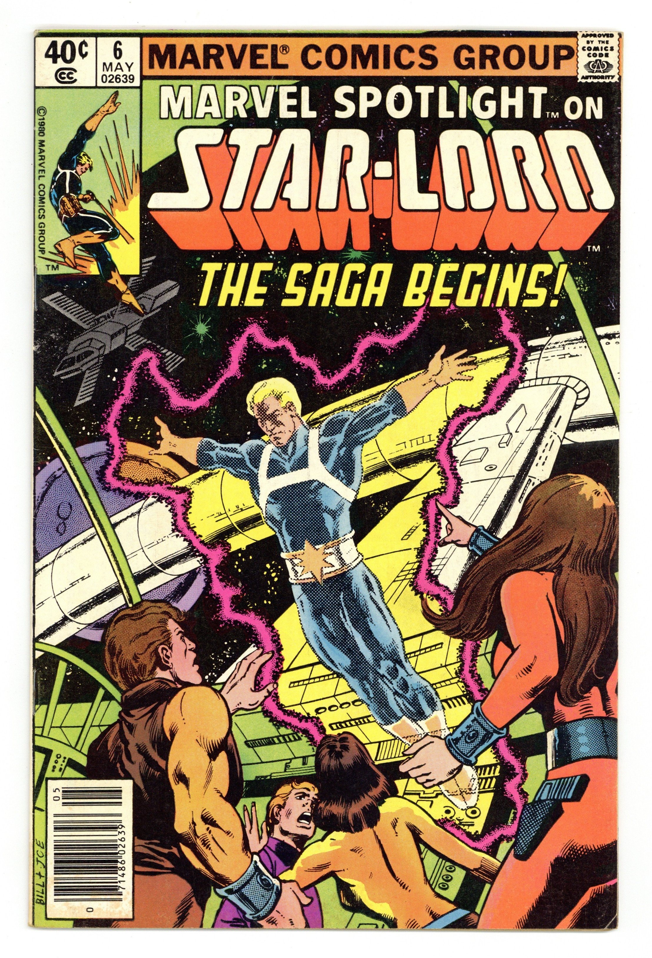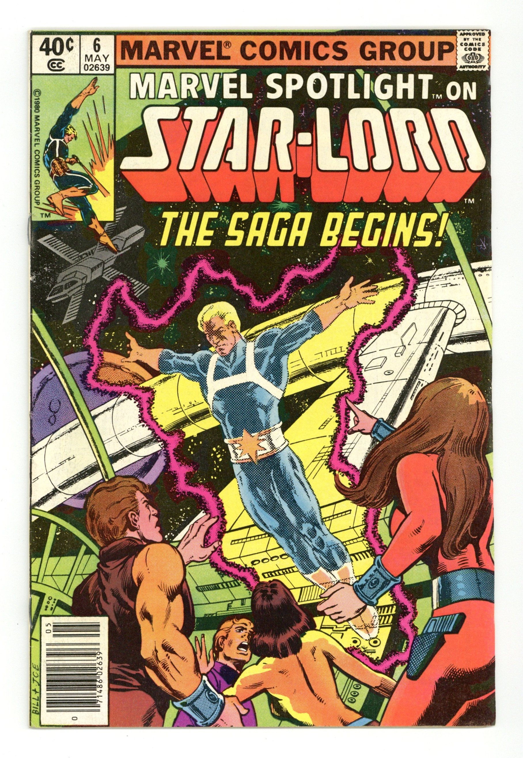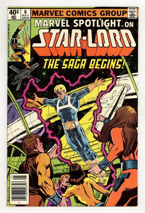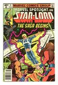 Newsstand Edition. Marvel Spotlight on Star-Lord - "The Saga of Star-Lord!" Written by Doug Moench. Art by Tom Sutton. Cover by Bill Sienkiewicz and Joe Rubinstein. The saga of Peter Quill, the invincible Star-Lord begins! 32 pages, FC. NOTE: Here's your chance to get caught up on the cosmic adventures of the hero that currently leads the Guardians of the Galaxy. - Odinson, Lone Star Comics Archivist Cover price $0.40.