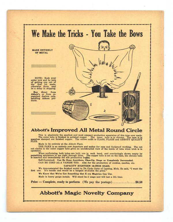 Published Apr 1944 by Abbott Magic & Novelty Co..$34.00- Spine split 5%.