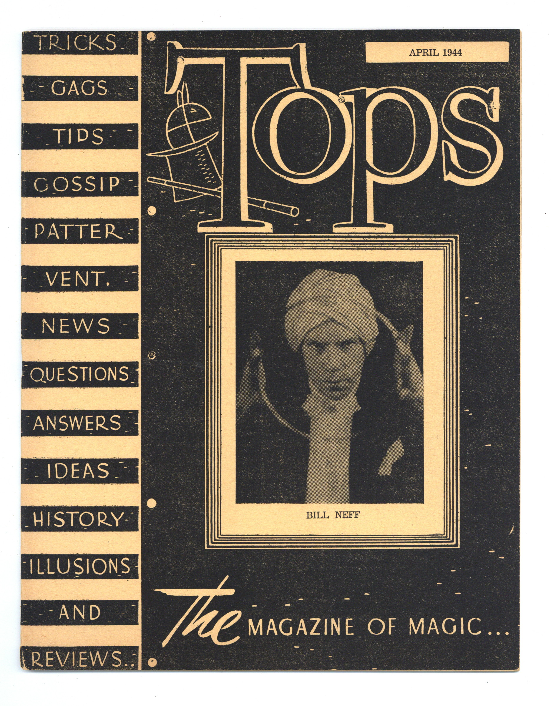 Vol. 9, No. 4 - April , 1944. Independent magazine in which those interested in Magic may express their thoughts, ideas, and criticisms. 8.5" x 11", 28 pages, B&W. Cover price $0.25.