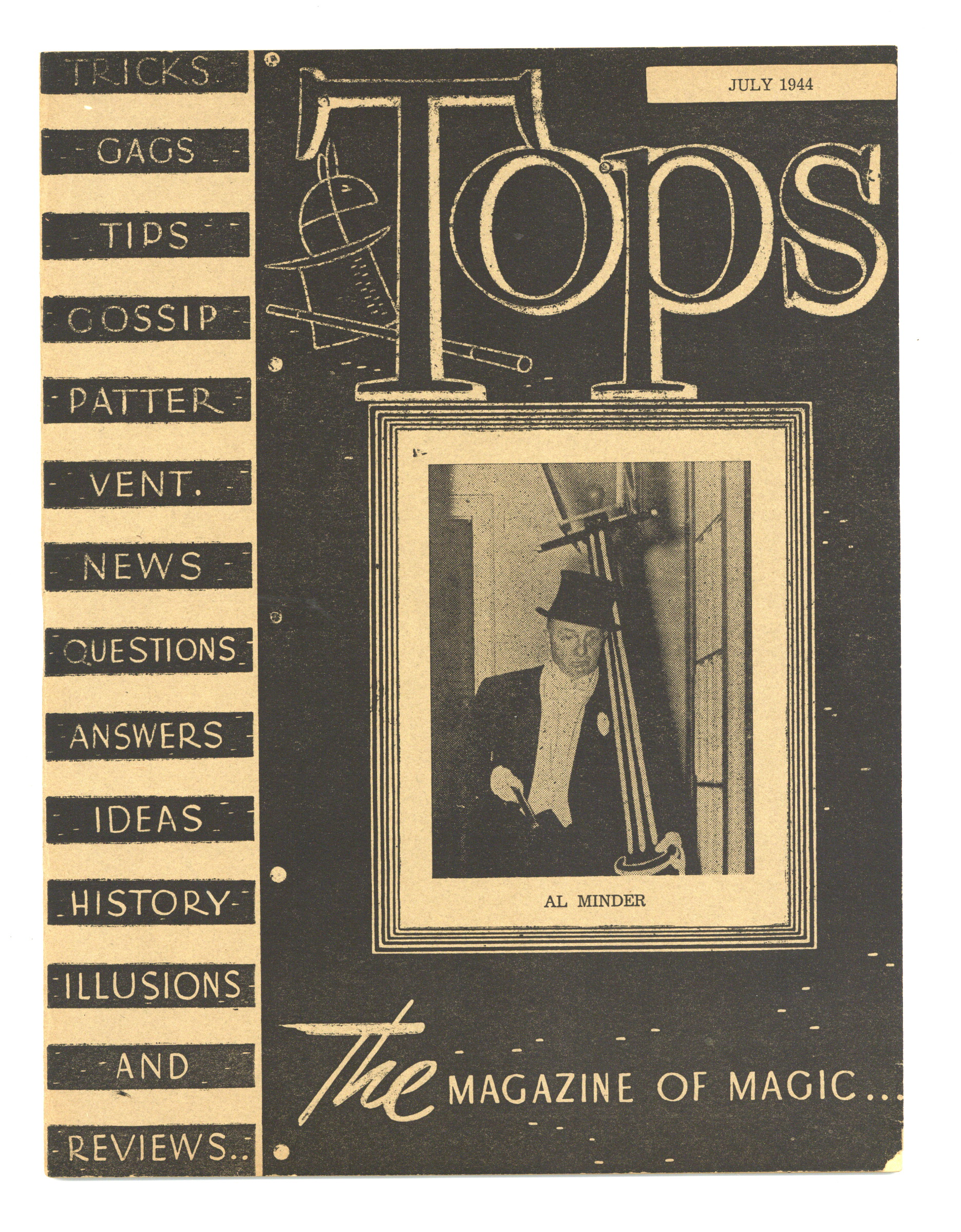 Vol. 9, No. 7 - July , 1944. Independent magazine in which those interested in Magic may express their thoughts, ideas, and criticisms. 8.5" x 11", 28 pages, B&W. Cover price $0.25.