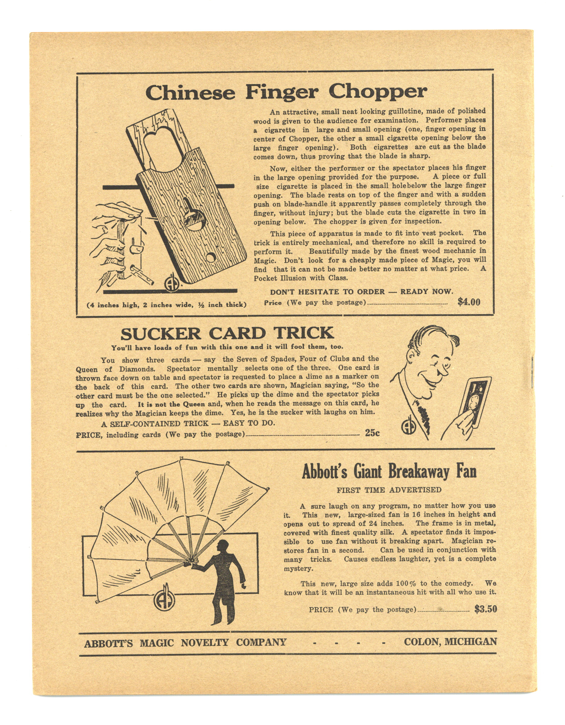 Published Jul 1944 by Abbott Magic & Novelty Co..$34.00- Staple rust: Slight.