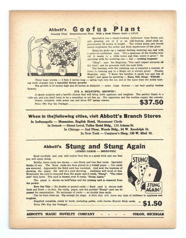Published Jul 1948 by Abbott Magic & Novelty Co..$28.00Vol. 13, No. 7 - July , 1948. Independent magazine in which those interested in Magic may express their thoughts, ideas, and criticisms. 8.5" x 11", 28 pages, B&W. Cover price $0.25.
