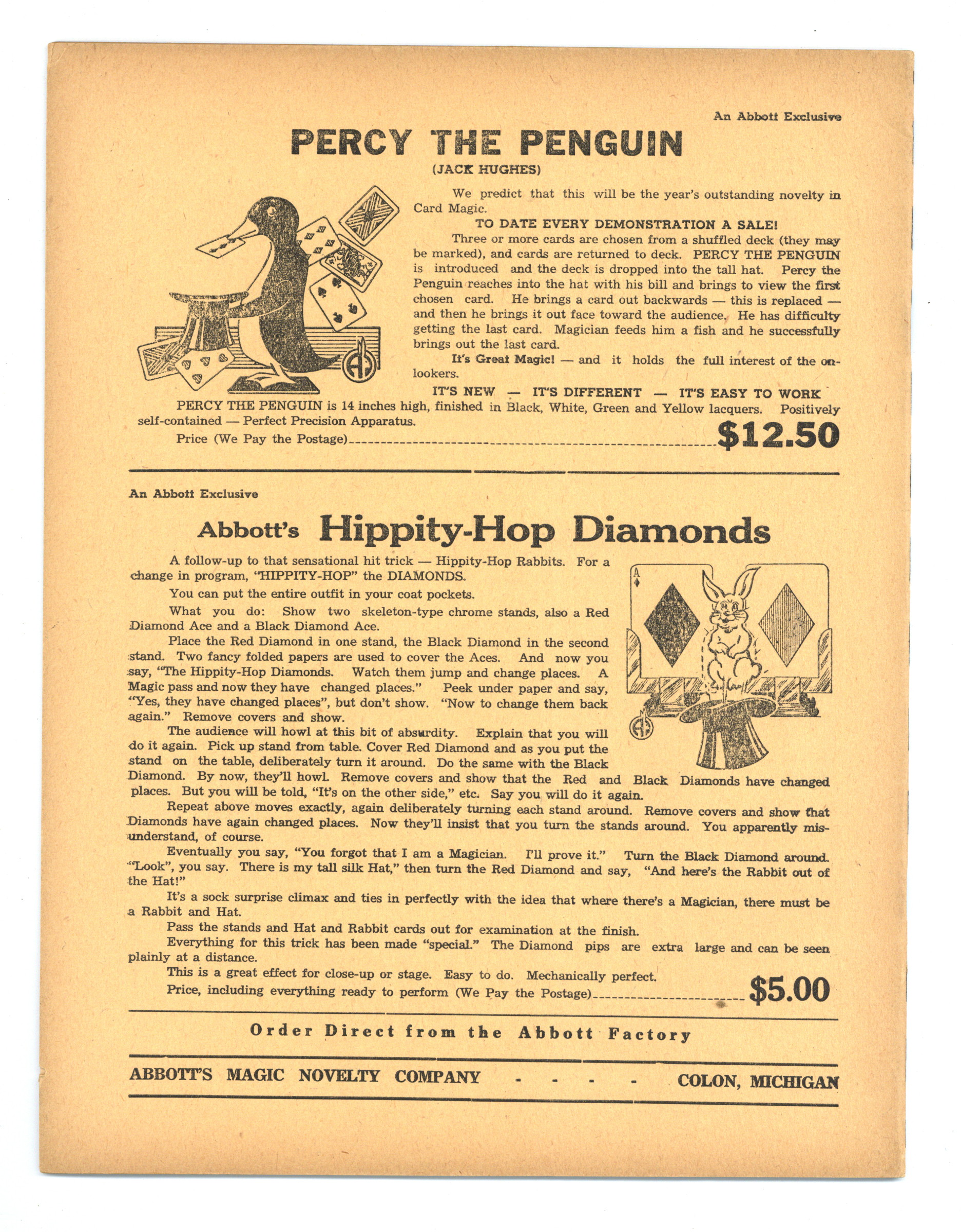 Published Aug 1948 by Abbott Magic & Novelty Co..$16.00Vol. 13, No. 8 - August , 1948. Independent magazine in which those interested in Magic may express their thoughts, ideas, and criticisms. 8.5" x 11", 28 pages, B&W. Cover price $0.25.