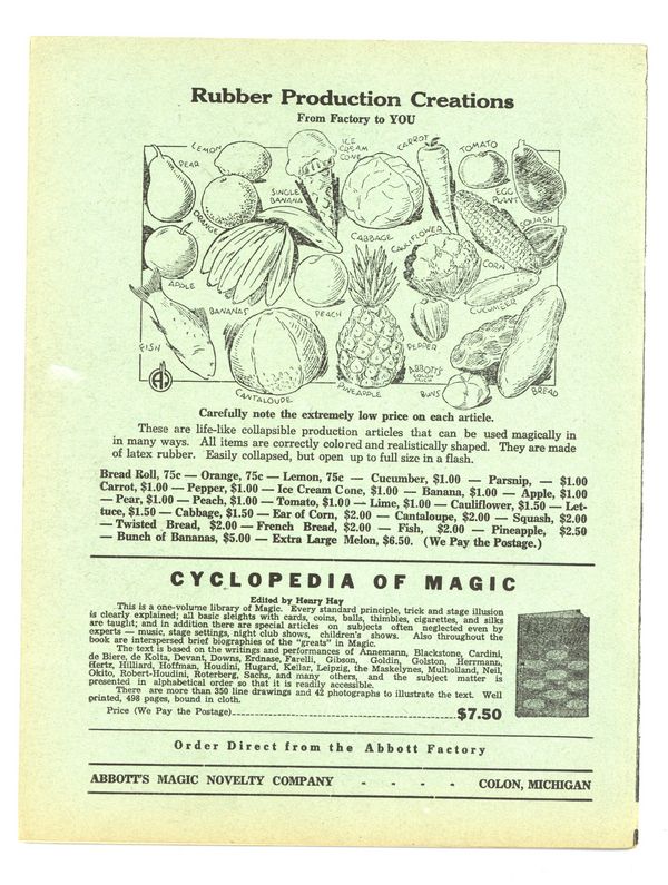 Published 1949 (est.) by Abbott Magic & Novelty Co..$26.00- Staple rust: Slight.