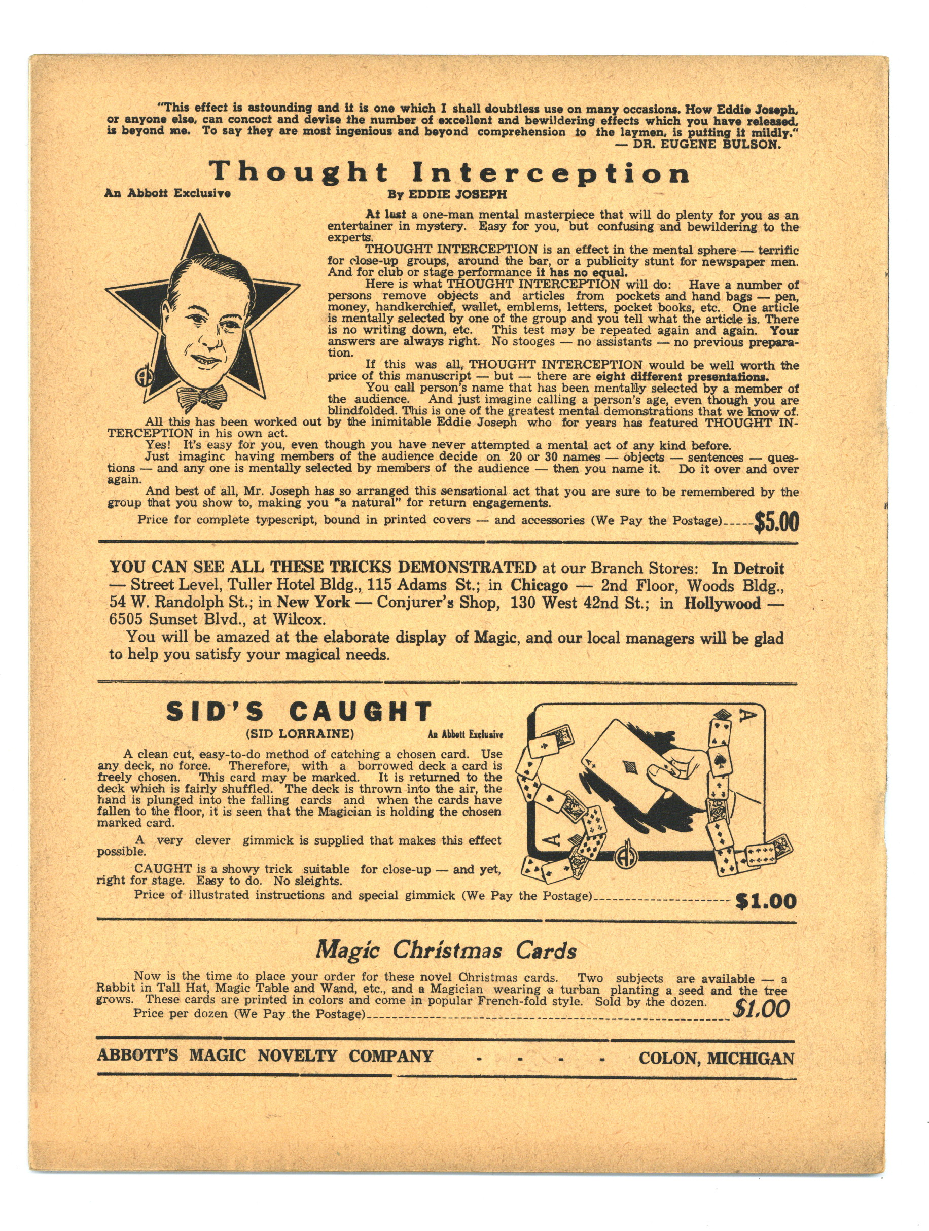 Published 1949 (est.) by Abbott Magic & Novelty Co..$34.00If you add this item to your want list, we will email you when it becomes available.
