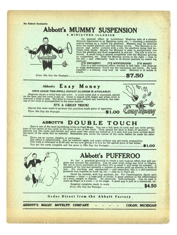 Published 1949 (est.) by Abbott Magic & Novelty Co..$34.00If you add this item to your want list, we will email you when it becomes available.