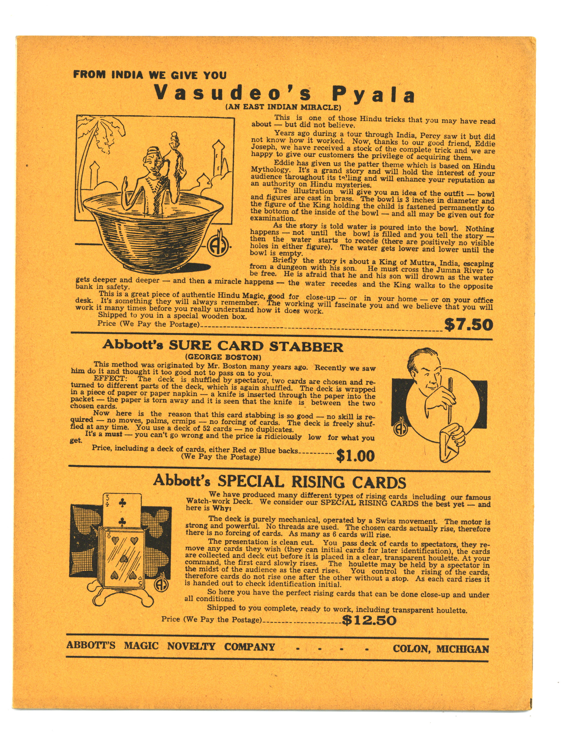 Published 1949 (est.) by Abbott Magic & Novelty Co..$28.00If you add this item to your want list, we will email you when it becomes available.