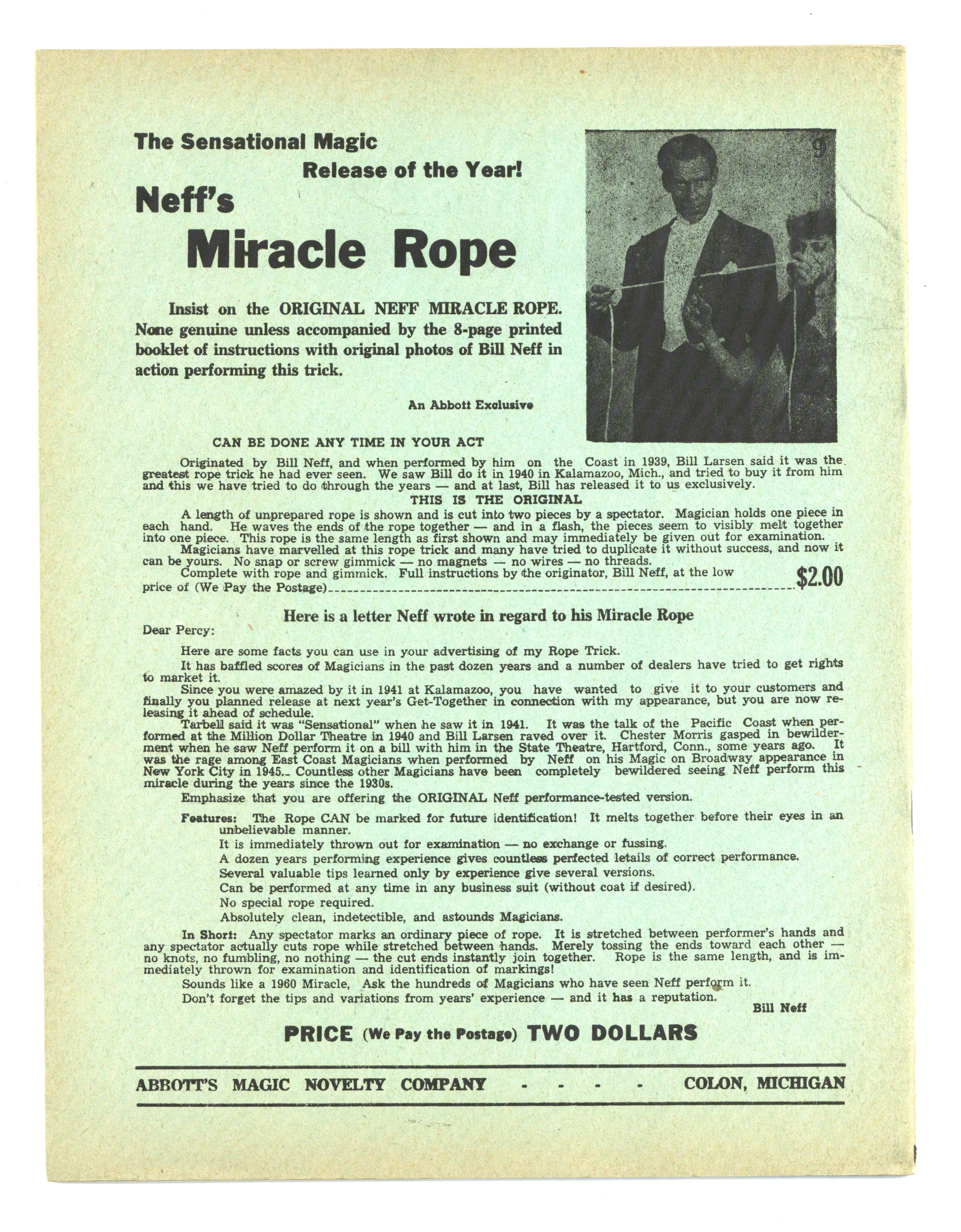 Published Feb 1950 by Abbott Magic & Novelty Co..$24.00Vol. 15, No. 2 - February , 1950. Independent magazine in which those interested in Magic may express their thoughts, ideas, and criticisms. 8.5" x 11", 28 pages, B&W. Cover price $0.25.
