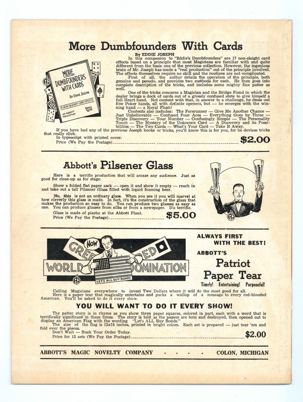 Published 1951 (est.) by Abbott Magic & Novelty Co..$17.00If you add this item to your want list, we will email you when it becomes available.
