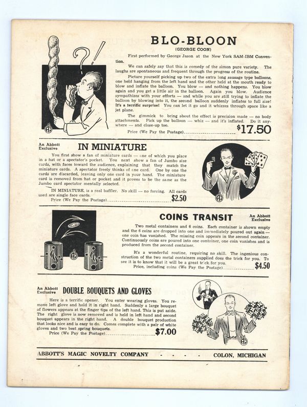 Published 1951 (est.) by Abbott Magic & Novelty Co..$17.00If you add this item to your want list, we will email you when it becomes available.