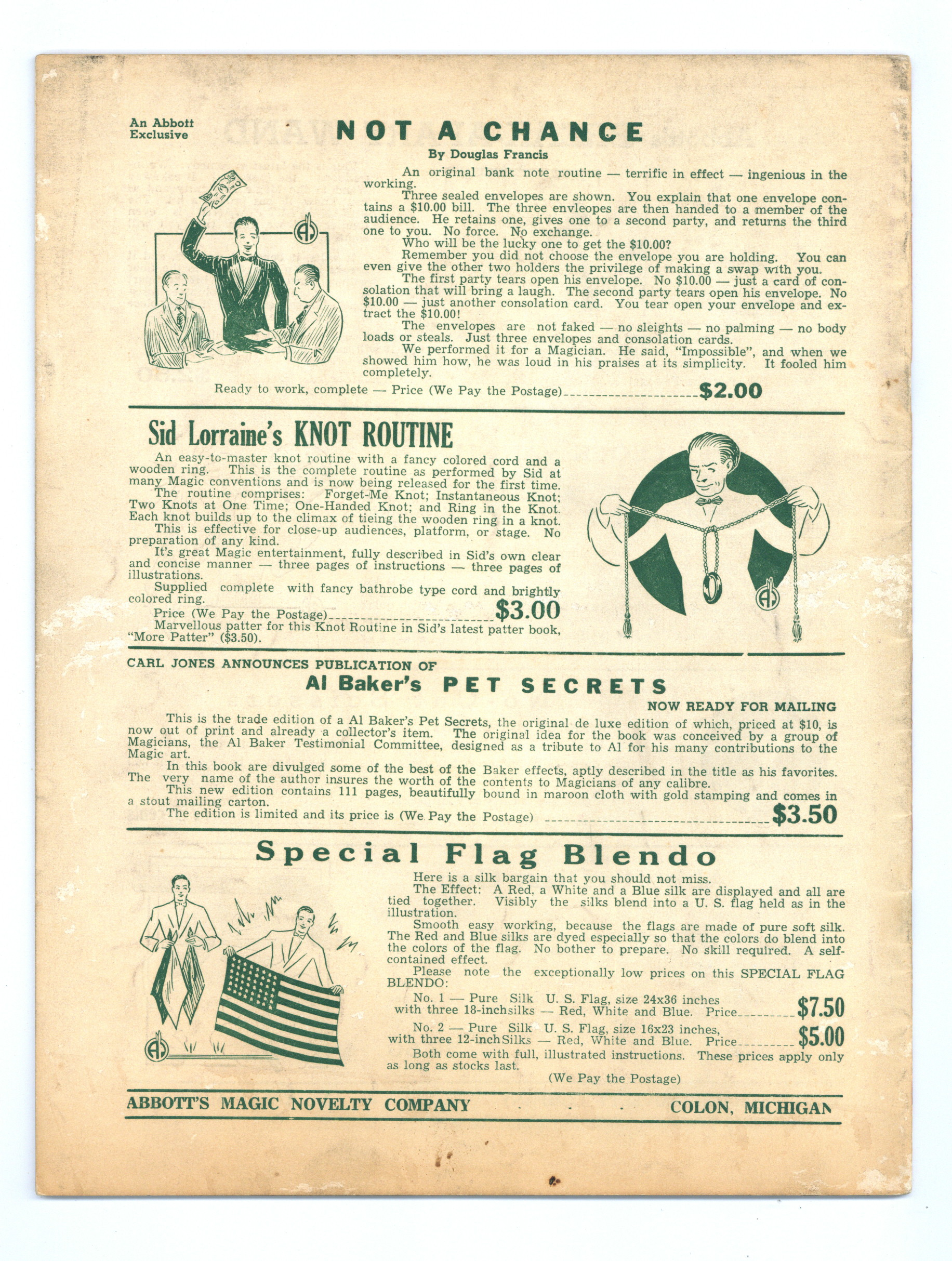 Published 1951 (est.) by Abbott Magic & Novelty Co..$9.60If you add this item to your want list, we will email you when it becomes available.