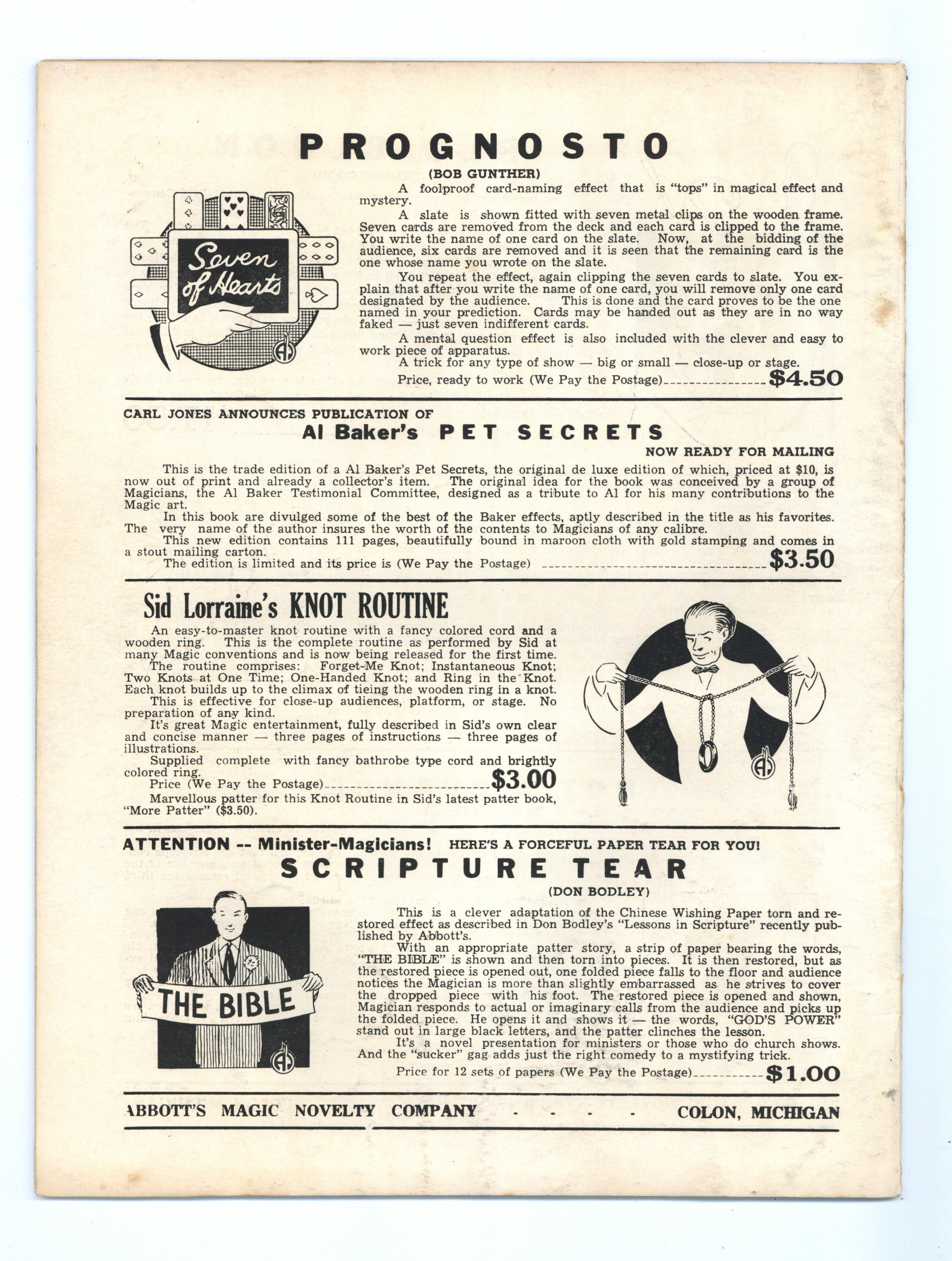 Published 1952 (est.) by Abbott Magic & Novelty Co..$10.25If you add this item to your want list, we will email you when it becomes available.