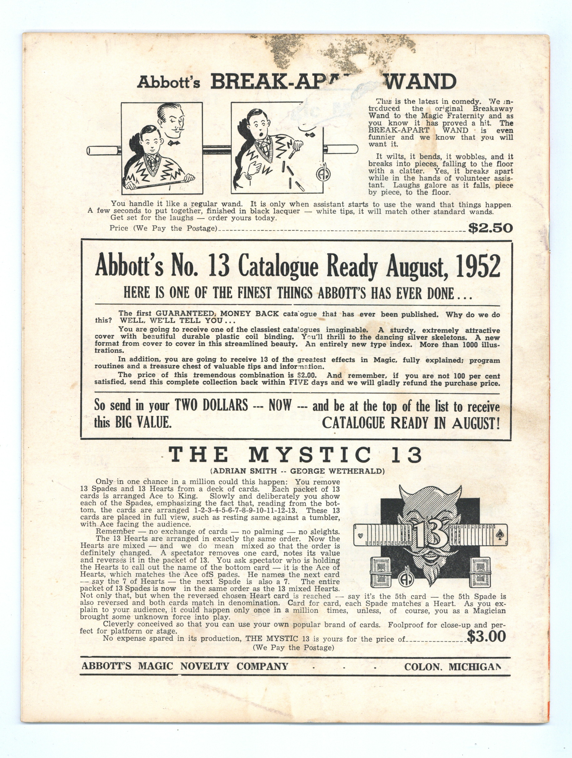 Published 1952 (est.) by Abbott Magic & Novelty Co..$5.40If you add this item to your want list, we will email you when it becomes available.