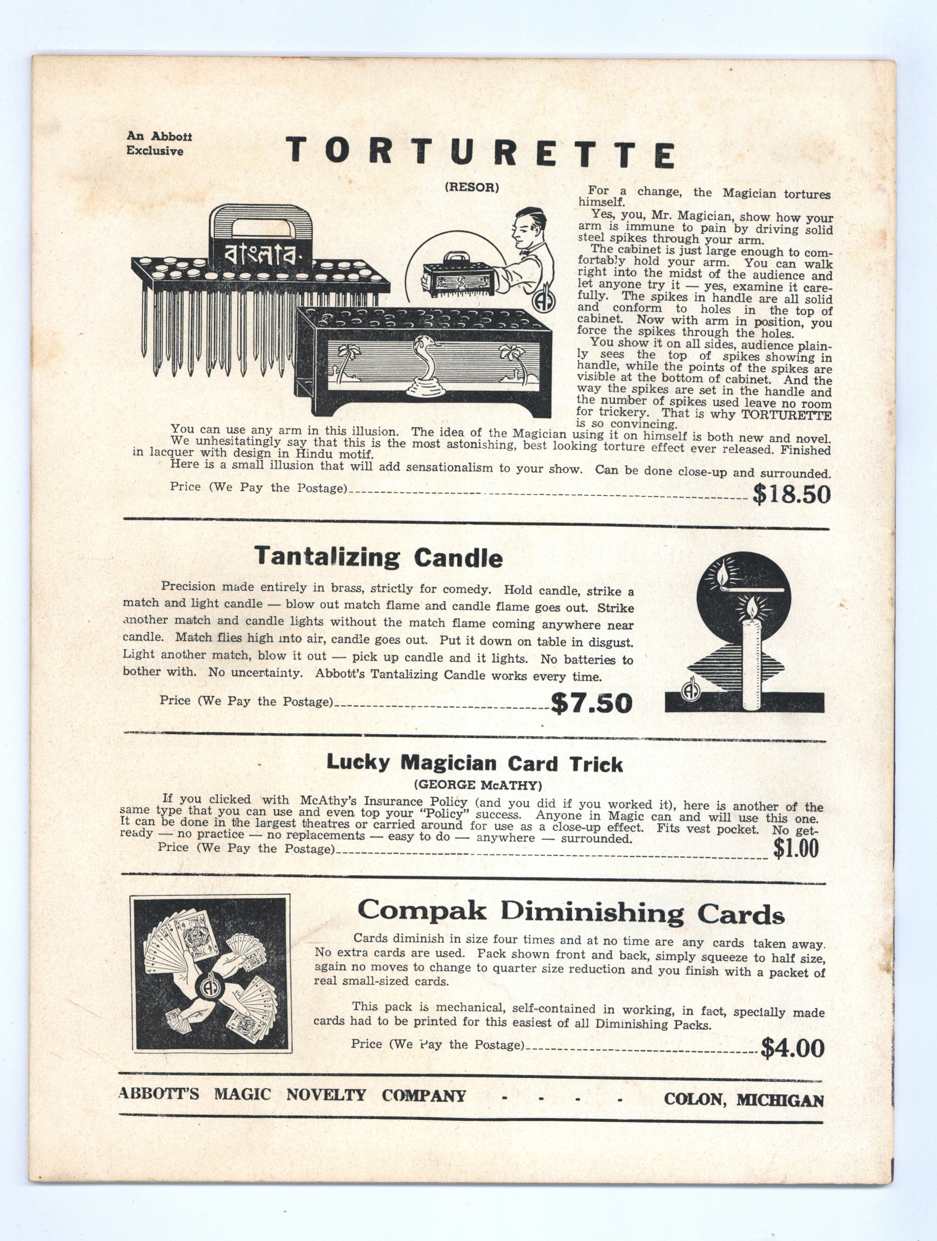 Published 1952 (est.) by Abbott Magic & Novelty Co..$17.00If you add this item to your want list, we will email you when it becomes available.