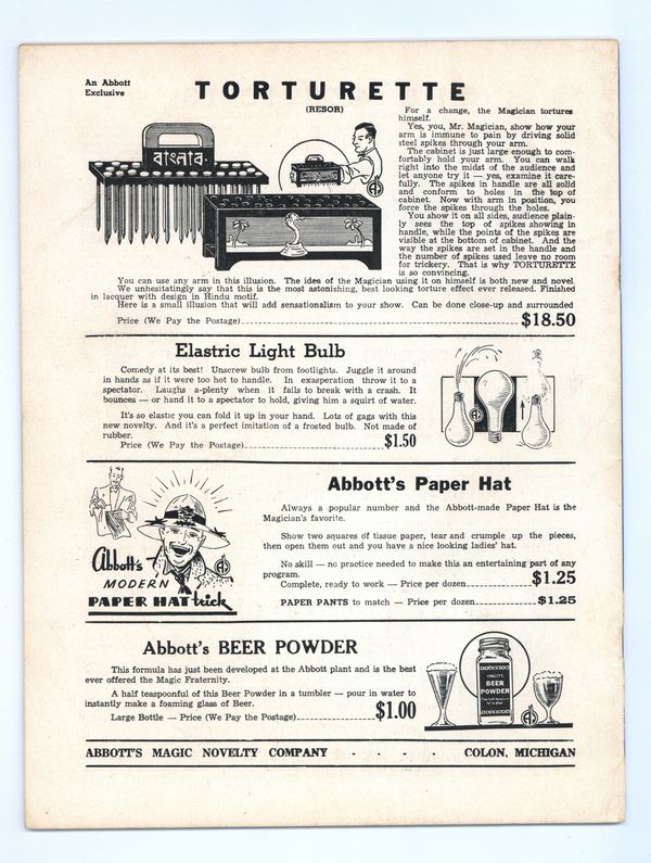 Published 1952 (est.) by Abbott Magic & Novelty Co..$10.25If you add this item to your want list, we will email you when it becomes available.