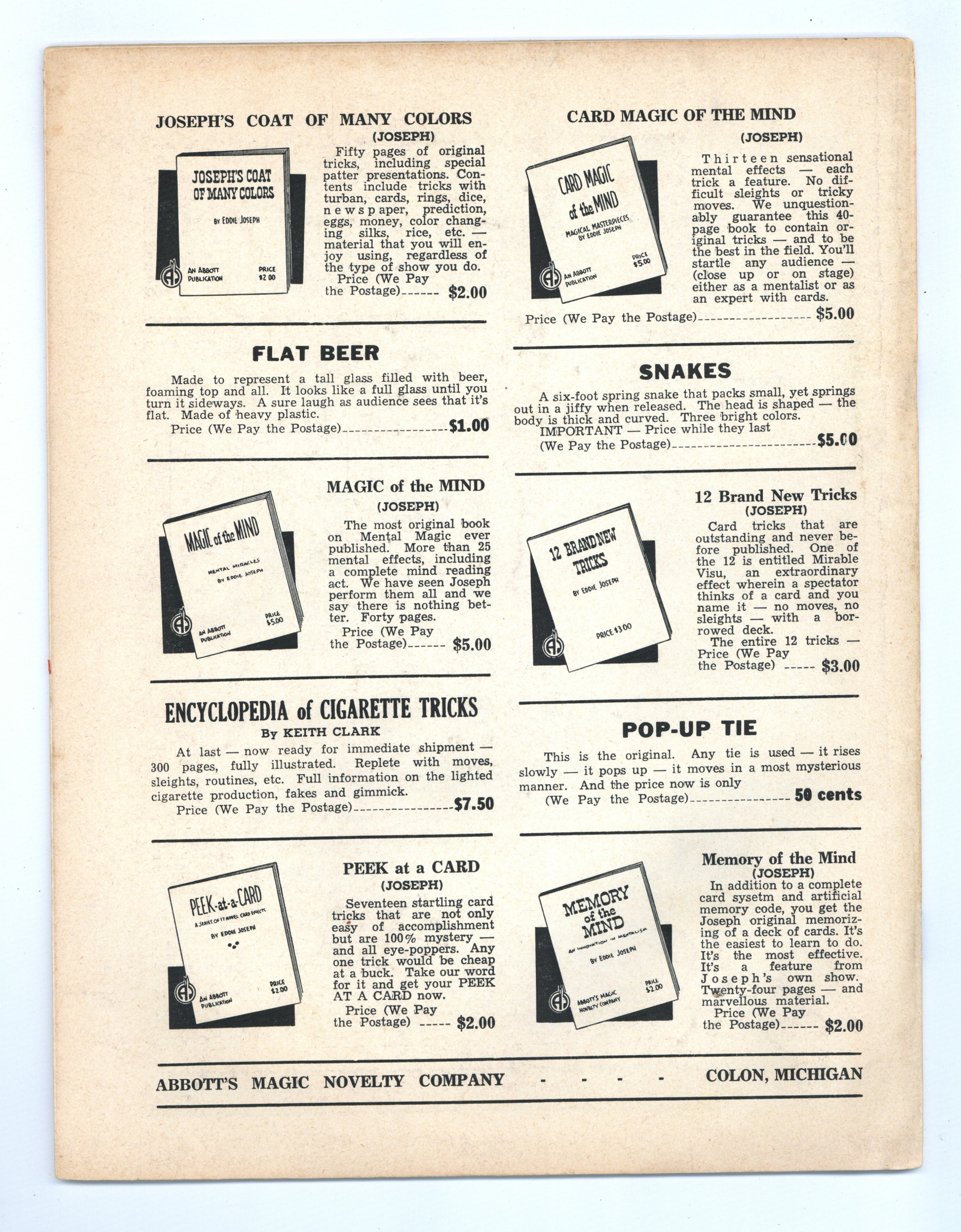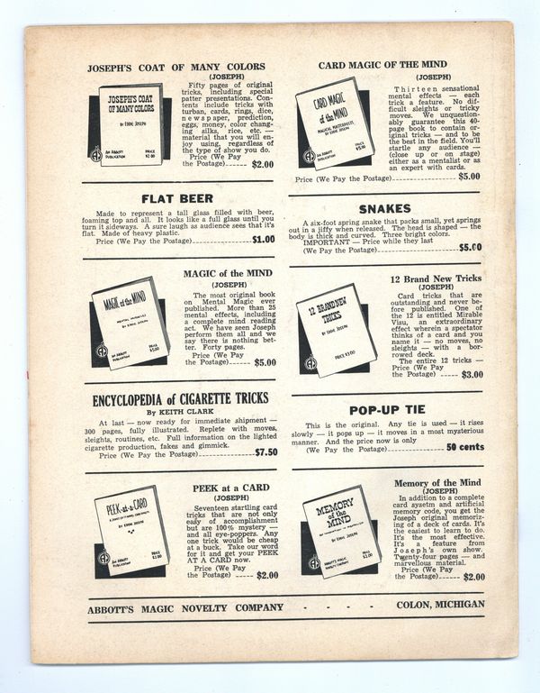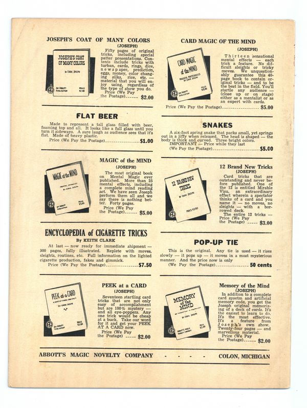 Published Dec 1952 by Abbott Magic & Novelty Co..$10.25- Staple rust: Moderate.