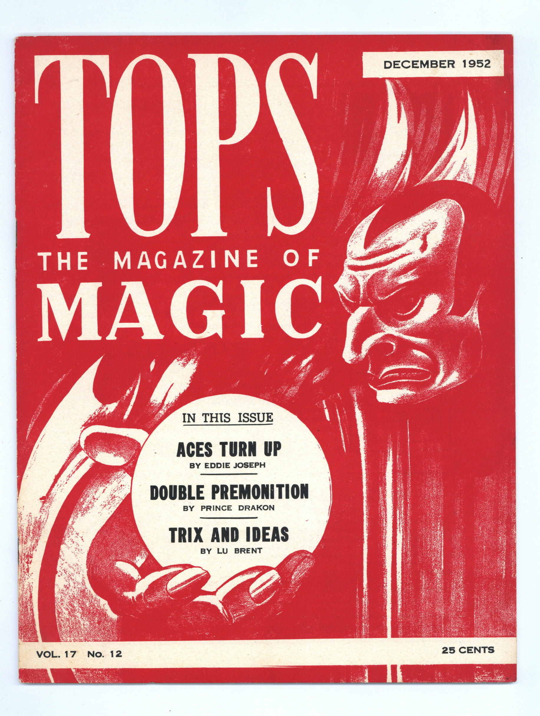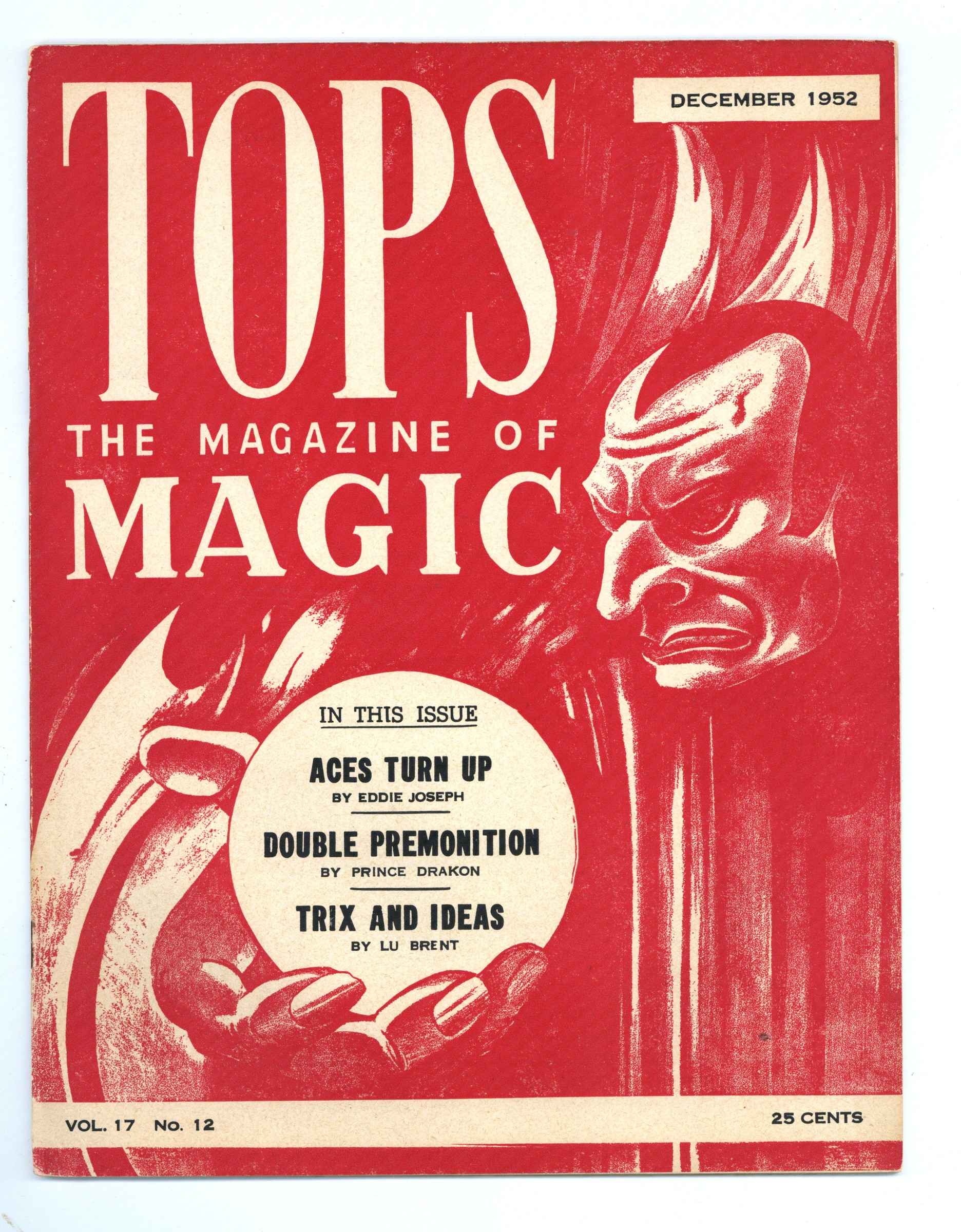 Published Dec 1952 by Abbott Magic & Novelty Co..$9.60Vol. 17, No. 12 - December , 1952. Independent magazine in which those interested in Magic may express their thoughts, ideas, and criticisms. 8.5" x 11", 28 pages, B&W. Cover price $0.25.