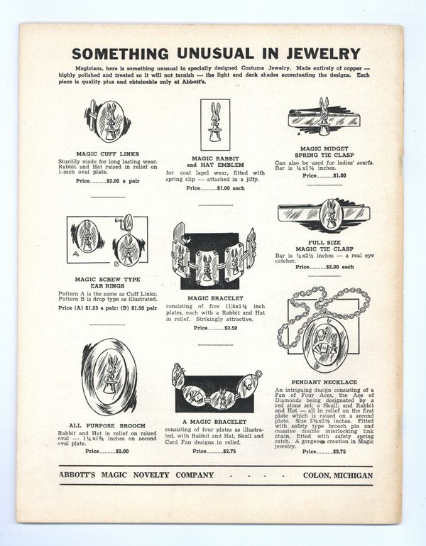 Published Mar 1953 by Abbott Magic & Novelty Co..$17.00- Spine split 5%. Staple rust: Slight.