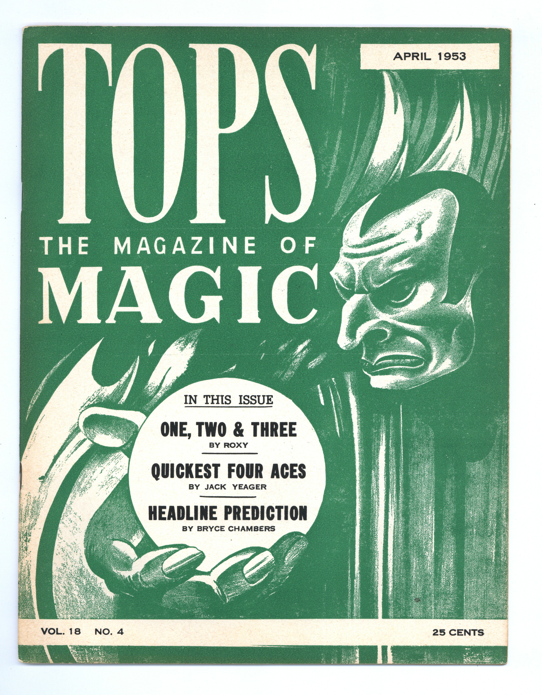 Vol. 18, No. 4 - April , 1953. Independent magazine in which those interested in Magic may express their thoughts, ideas, and criticisms. 8.5" x 11", 28 pages, B&W. Cover price $0.25.