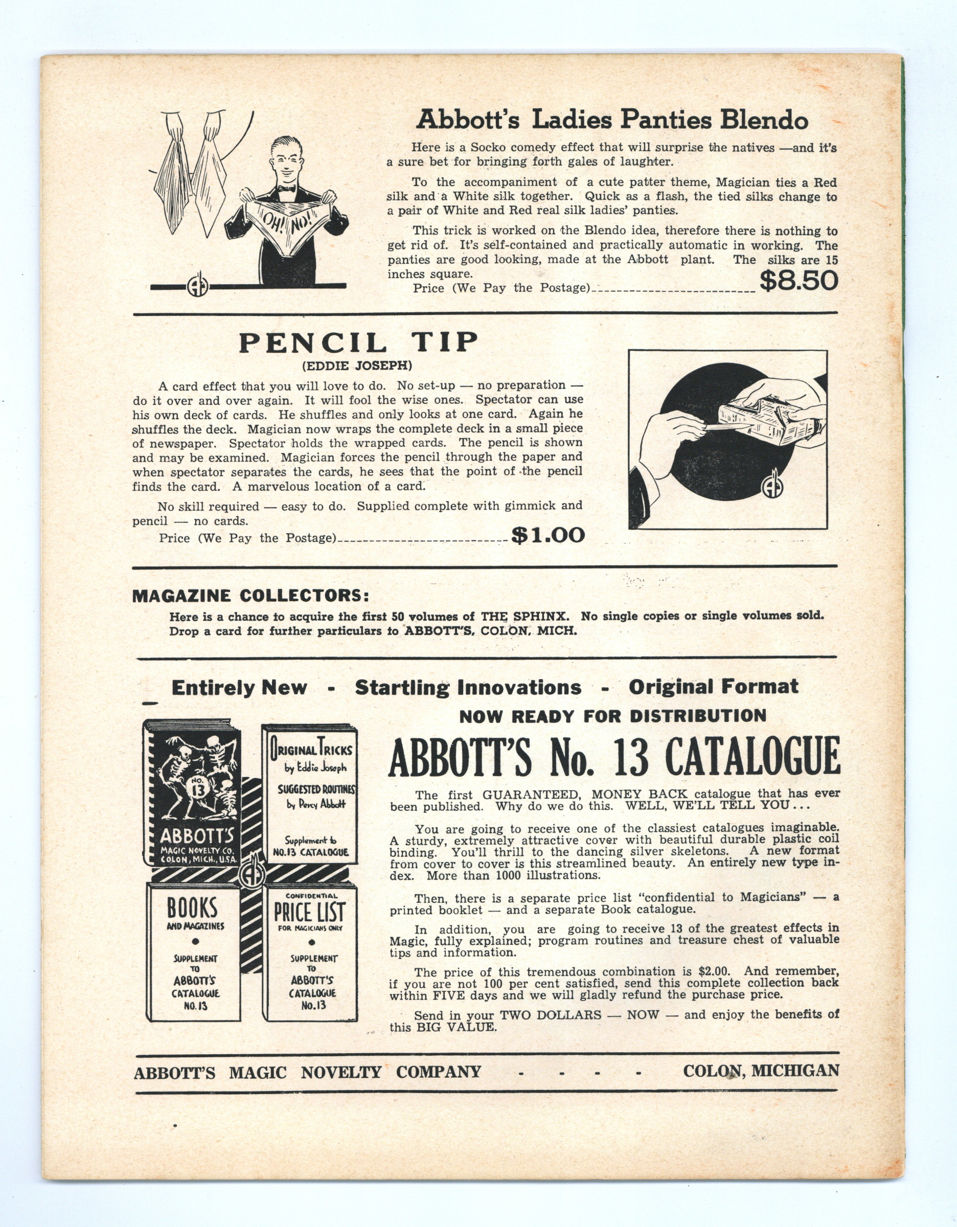 Published Apr 1953 by Abbott Magic & Novelty Co..$17.00- Staple rust: Slight.