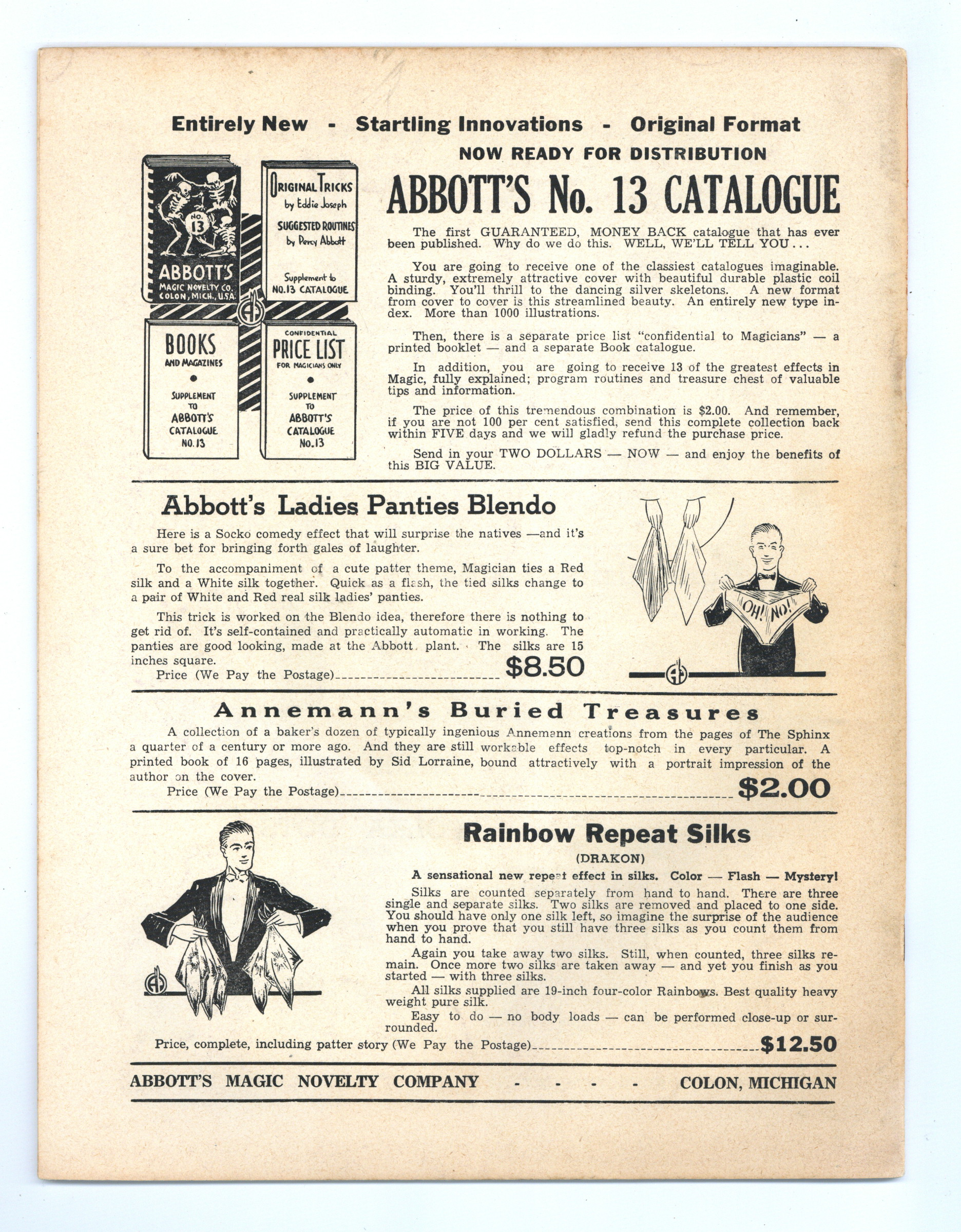 Published May 1953 by Abbott Magic & Novelty Co..$17.00- Staple rust: Slight.