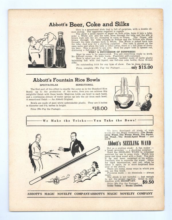 Published Aug 1953 by Abbott Magic & Novelty Co..$17.00- Staple rust: Slight.
