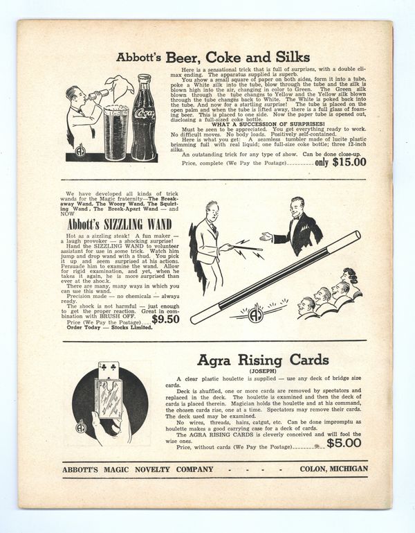 Published Oct 1953 by Abbott Magic & Novelty Co..$17.00- Staple rust: Slight.