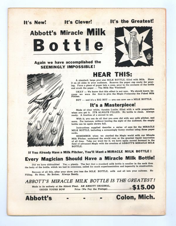 Published Sep 1954 by Abbott Magic & Novelty Co..$10.25- Staple rust: Slight.