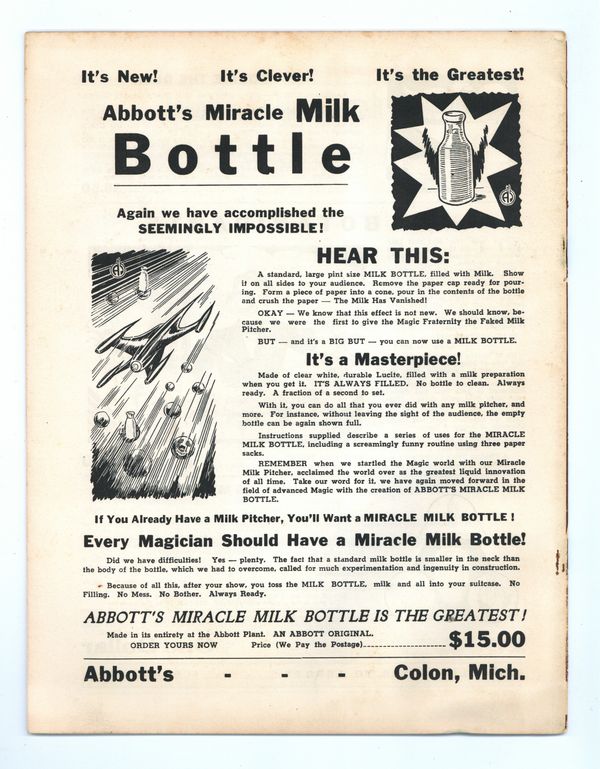 Published Oct 1954 by Abbott Magic & Novelty Co..$5.40- Water damage: Moderate. Staple rust: Slight.