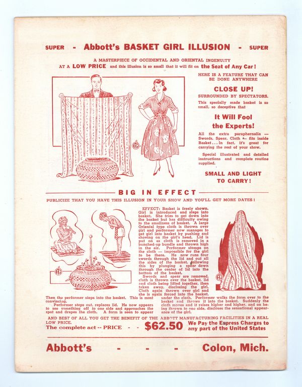 Published Nov 1954 by Abbott Magic & Novelty Co..$5.40- Water damage: Moderate. Staple rust: Slight.