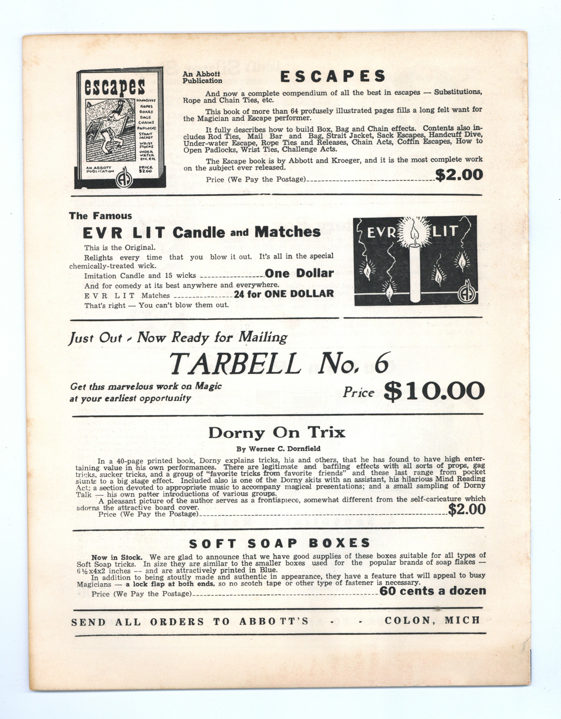 Published Feb 1955 by Abbott Magic & Novelty Co..$5.40- Water damage: Moderate. Staple rust: Slight.