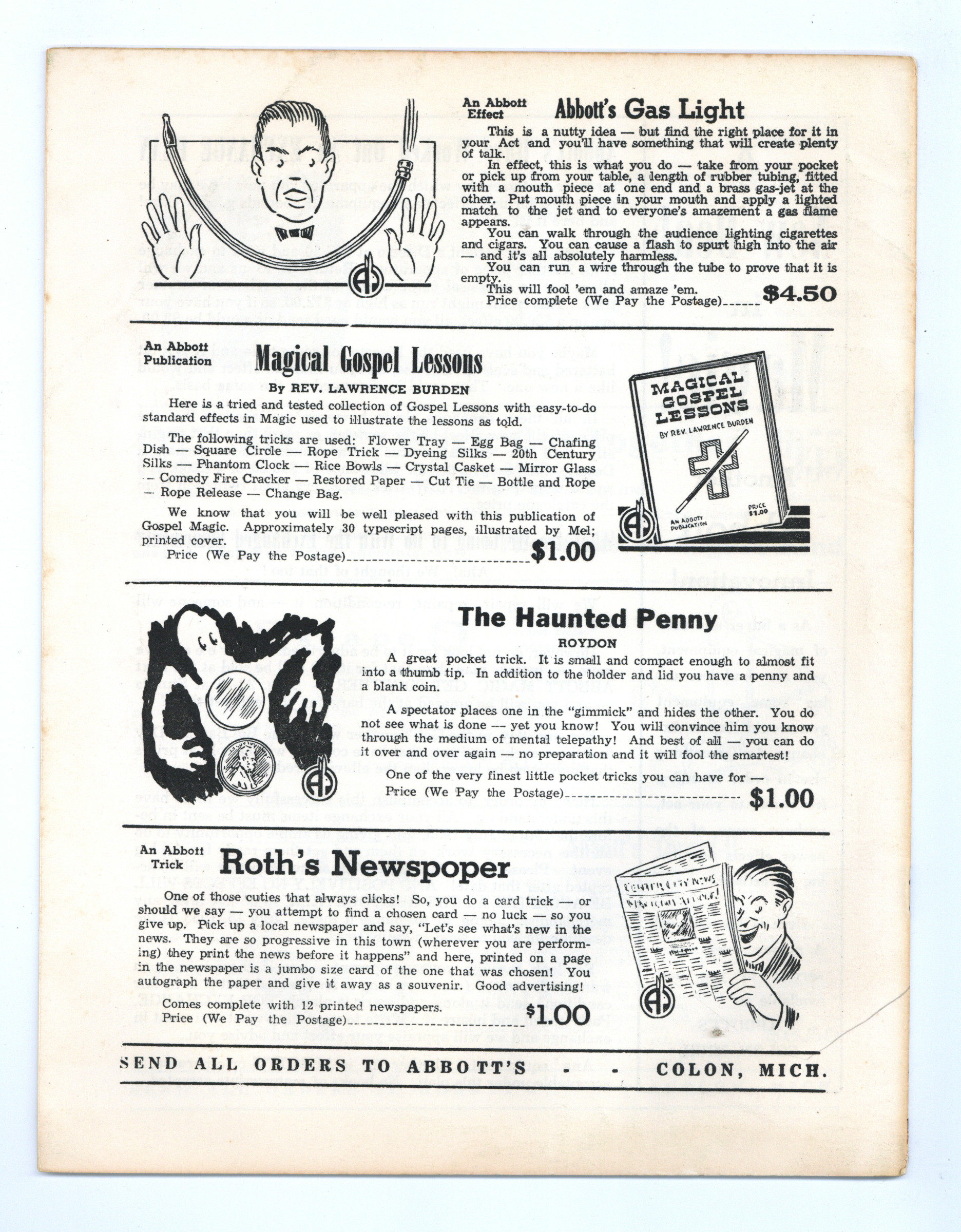 Published Mar 1955 by Abbott Magic & Novelty Co..$9.60- Water damage: Slight. Staple rust: Slight.