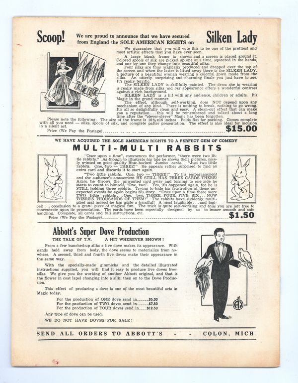 Published Jun 1955 by Abbott Magic & Novelty Co..$10.25- Staple rust: Moderate.