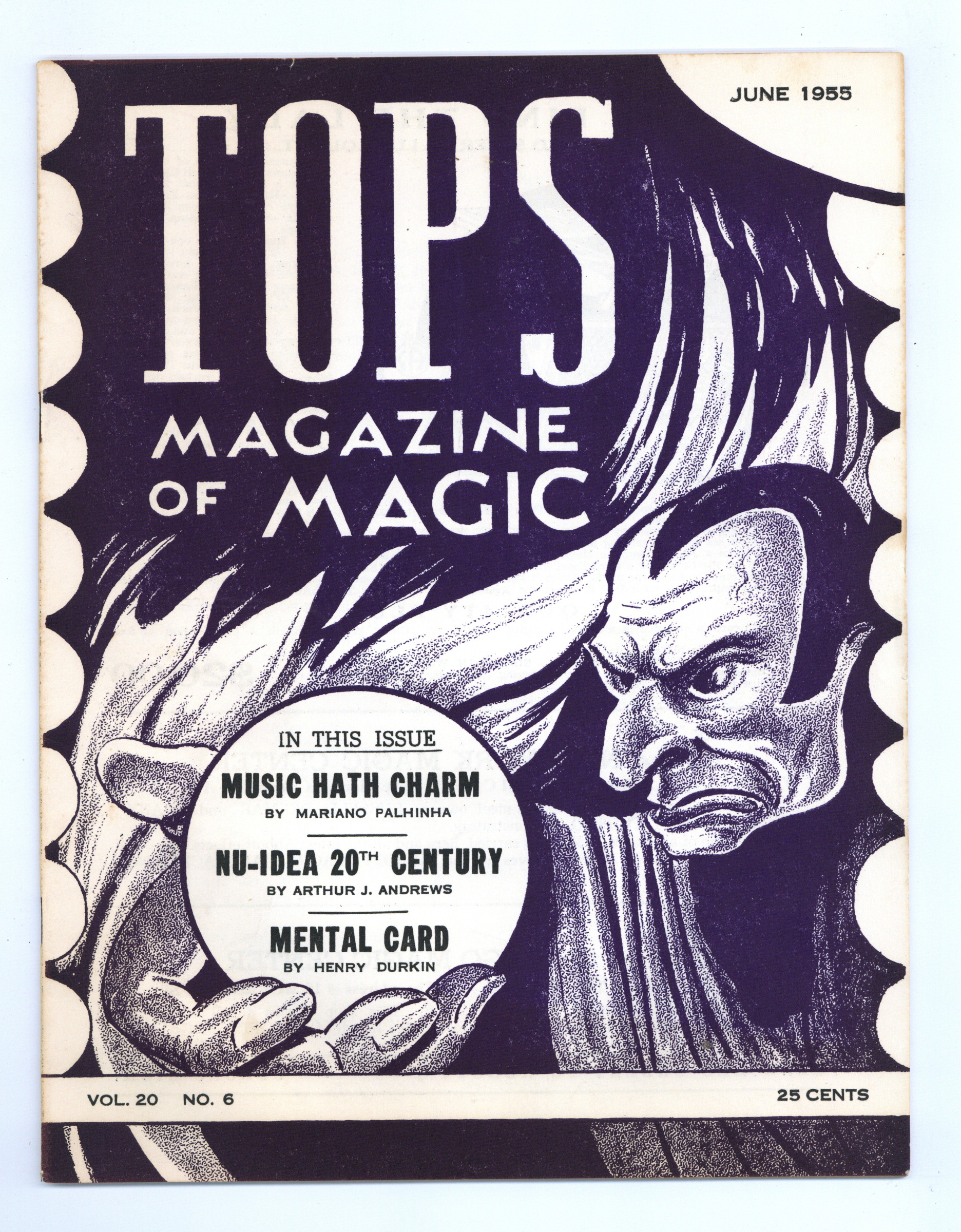Vol. 20, No. 6 - June , 1955. Independent magazine in which those interested in Magic may express their thoughts, ideas, and criticisms. 8.5" x 11", 28 pages, B&W. Cover price $0.25.
