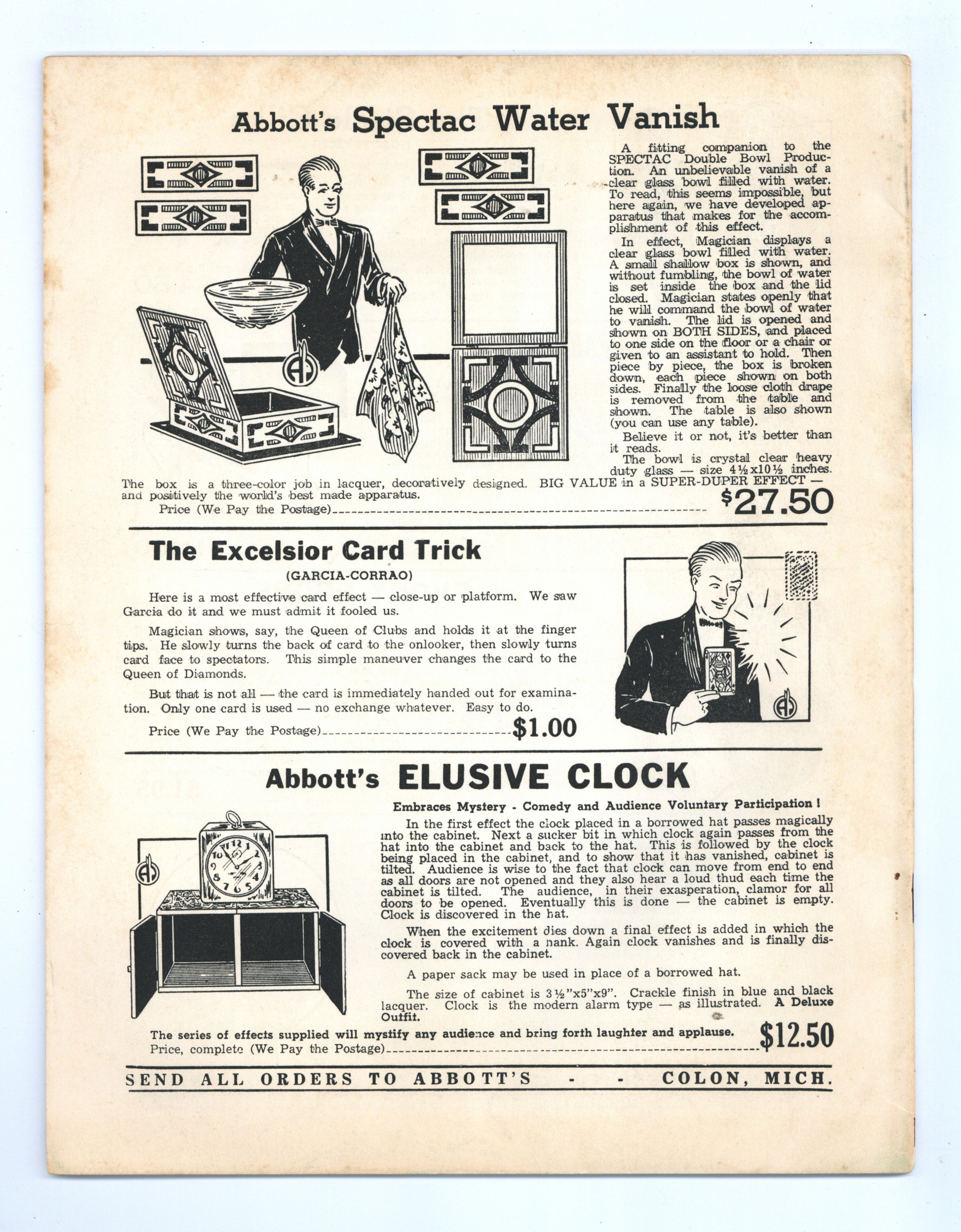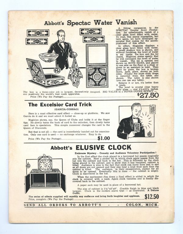 Published Oct 1955 by Abbott Magic & Novelty Co..$10.25- Staple rust: Slight.