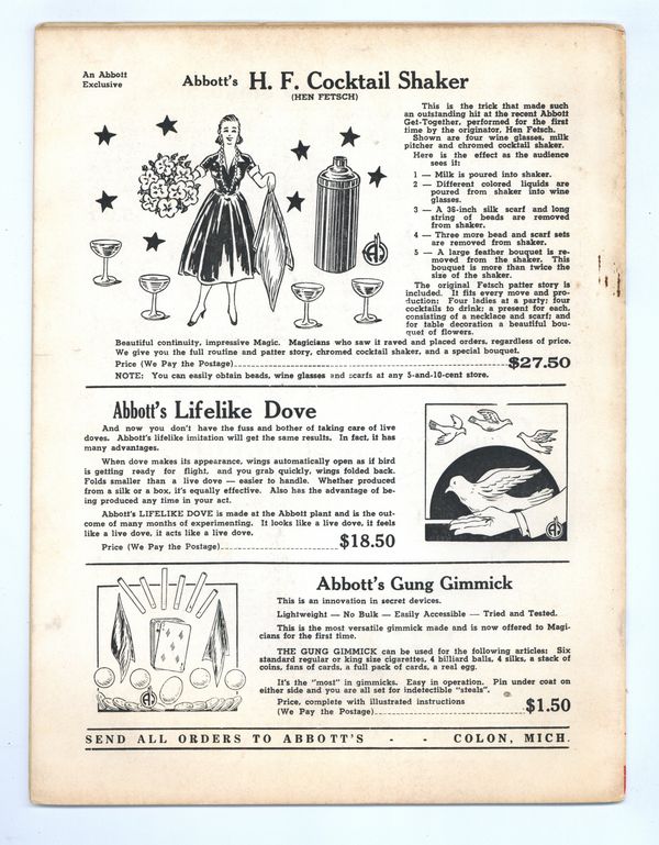 Published Dec 1955 by Abbott Magic & Novelty Co..$9.60- Staple rust: Slight.