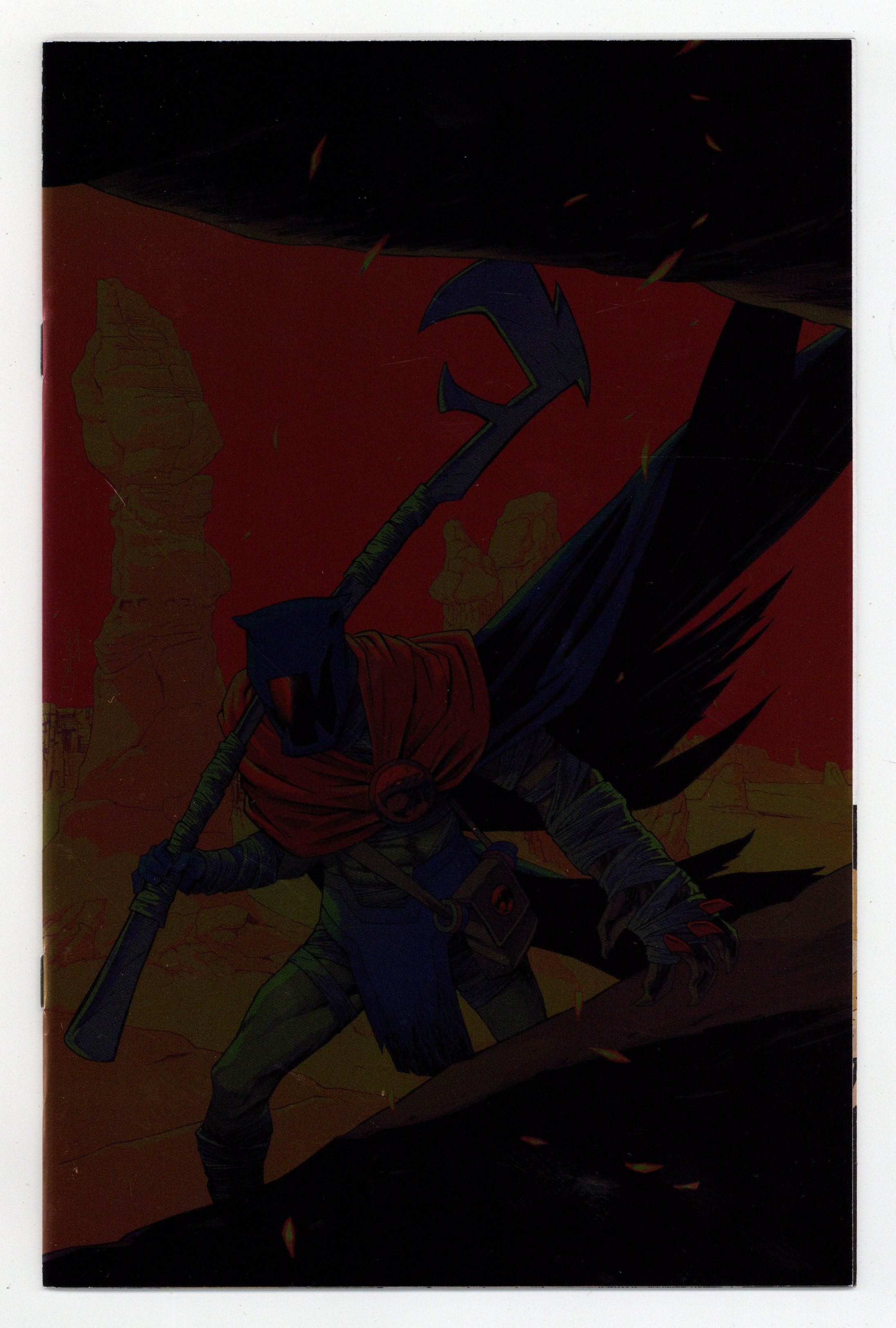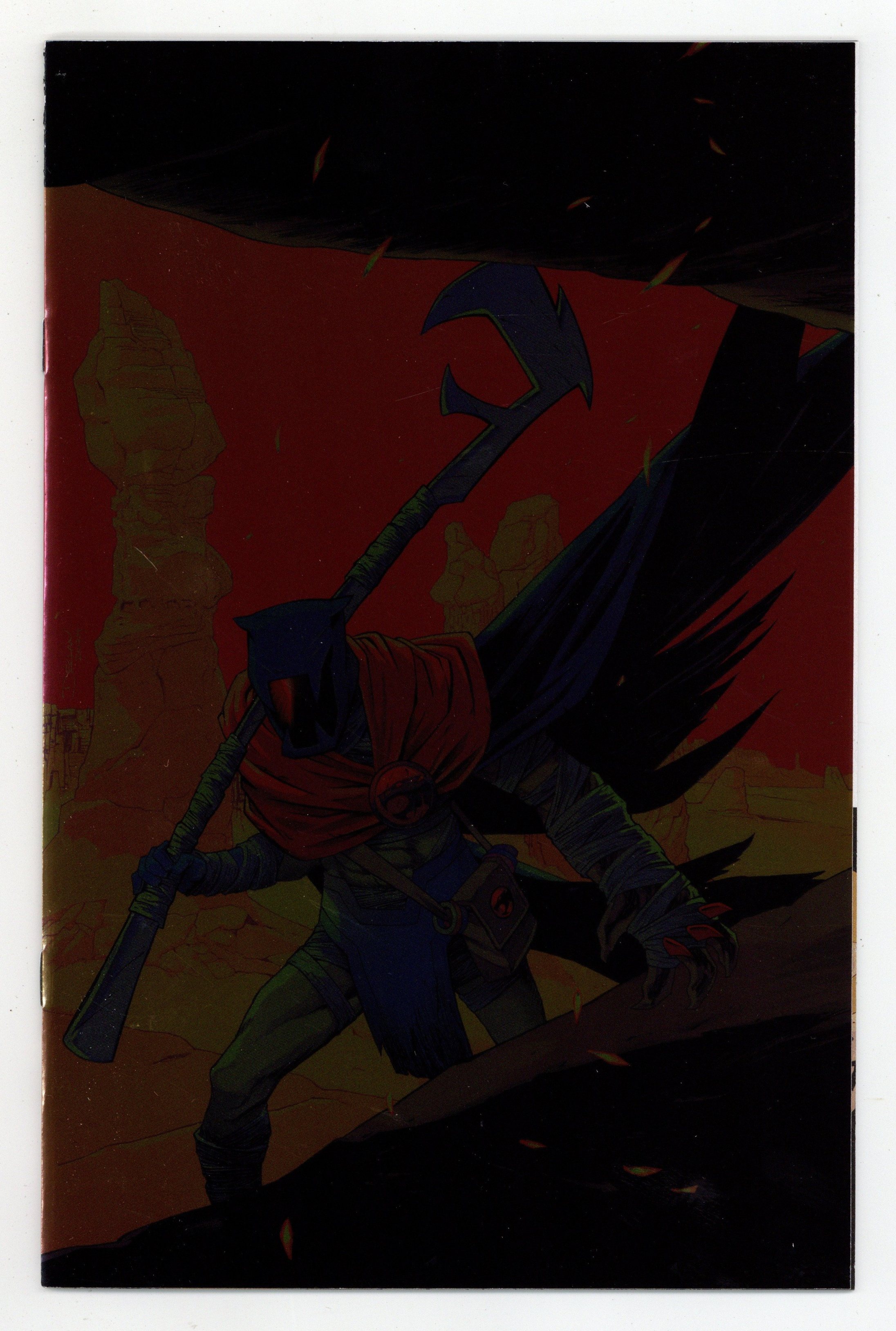 Published Dec 2024 by Dynamite Entertainment.$22.00Foil Virgin Cover by Declan Shalvey. Written by Ed Brisson. Art by Rapha Lobosco. Across a desert landscape, a cloaked rider emerges from the shimmering heat. A lone figure on a battered mount, he's a tempting target for bandits - and temptation is not something that the inhabitants of these badlands are inclined to resist. Unfortunately for the miscreants who decide to waylay him, that choice will likely be the last one they ever make. And when the dusty traveler walks into the local saloon, it soon becomes clear that anyone who stands between him and his mission will share the same fate. But who is this mysterious stranger - and what is the target that he has fixed his glowing red eye upon? Featuring otherworldly covers from DECLAN SHALVEY, LUCIO PARRILLO, MEGHAN HETRICK, and JAE LEE & JUNE CHUNG, this historic 40-page special from renowned writer ED BRISSON (Batman Incorporated, Uncanny X-Men) and acclaimed artist RAPHA LOBOSCO (James Bond: 007) answers the most burning question on all of Third Earth - who is Apex? - and sets the stage for the dramatic new story arc launching in ThunderCats #11! 40 pages, full color. Rated T Cover price $29.99.