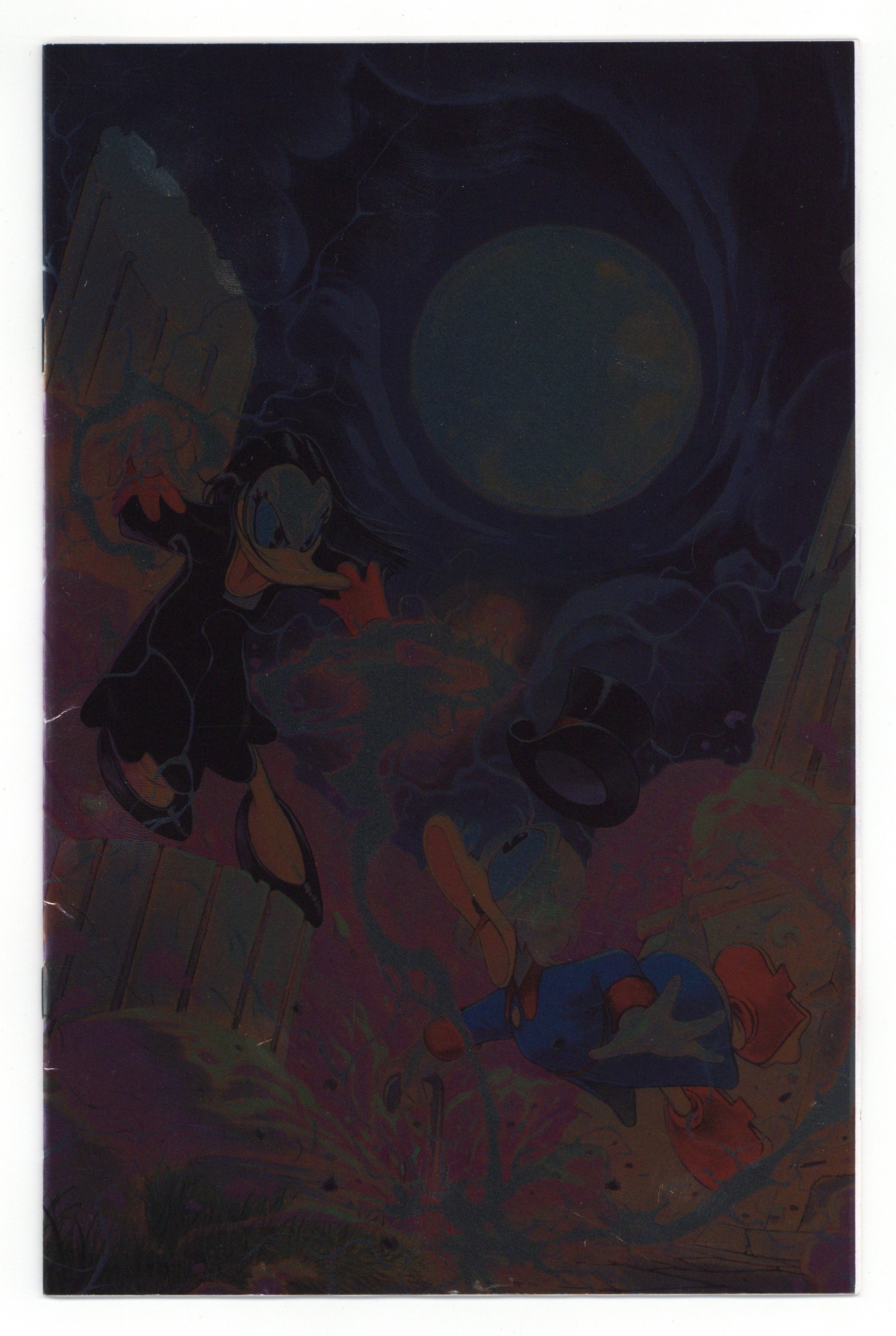 Tags: Disney Ducks & MicePublished Dec 2024 by Dynamite Entertainment.$16.00Foil Edition Virgin Cover by Ivan Bigarella. Written by Brandon Montclare. Art by Tommaso Ronda. Over the years, Scrooge McDuck has invested in every kind of industry that turns a profit, from tea farming to sturgeon fishing to uranium mining. So it only stands to reason that he's also the owner of Duckburg's premiere movie house, the Scrooge-A-Rama Dome, which he built to be to most palatial of motion picture palaces - inspired by both the grandeur of the Colosseum in Rome and the chance to charge top-dollar admission fees! But something is amiss with the Dome's receipts, and the explanations from the projectionist and the ticket clerk, Messrs. Franks and Beans, aren't adding up. When Scrooge and his nephews Huey, Dewey, and Louie pay the theater a visit to find out more, everybody is in for a surprise when the true tale behind its fiduciary discrepancies is revealed! DuckTales author BRANDON MONTCLARE and artist TOMMASO RONDA target all four audience quadrants with their second blockbuster issue - bolstered by eye-catching covers from IVAN BIGARELLA, FRANCESCO TOMASELLI, CARLO LAURO, and ALAN QUAH! 32 pages, full color. Cover price $29.99.