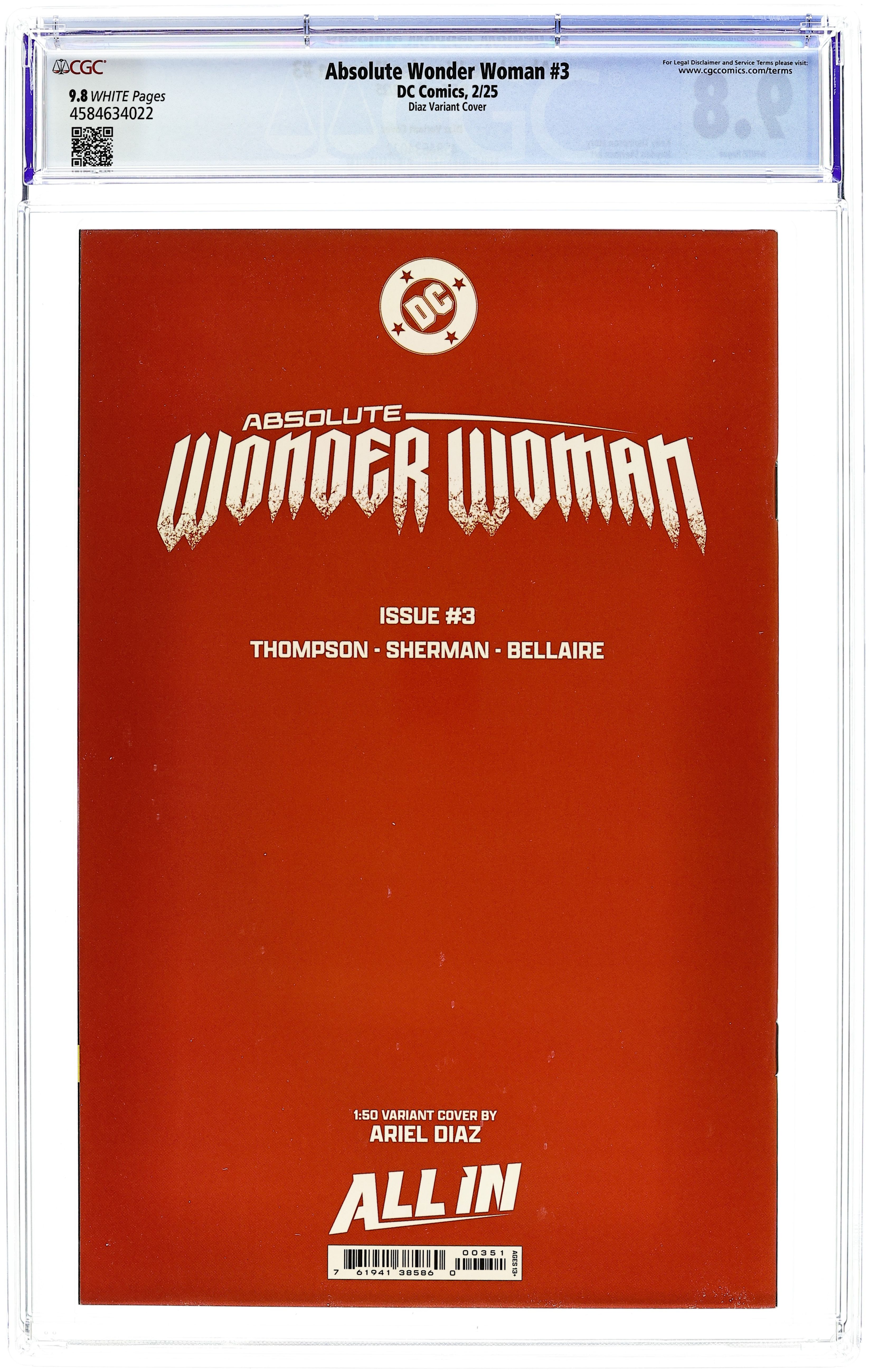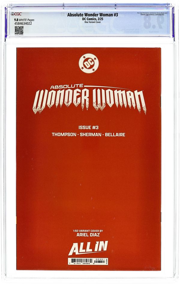 Limited 1 for 50 Retailer Incentive Variant Cover. Written by Kelly Thompson. Art by Hayden Sherman. Cover by Ariel Diaz. ENTER: STEVE TREVOR! A Harbinger is but a messenger. It is The Tetracide that you must fear, for The Tetracide leaves nothing behind. Diana's true enemy has been revealed--and it will take everything she has to save Gateway City from oblivion! 32 pages, full color. Rated T+ Cover price $5.99.