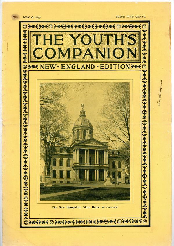 New England Edition of The Youth's Companion, a weekly tabloid printed on good quality newsprint. 11" x 16", 16 pages, B&W. Cover price $0.05.