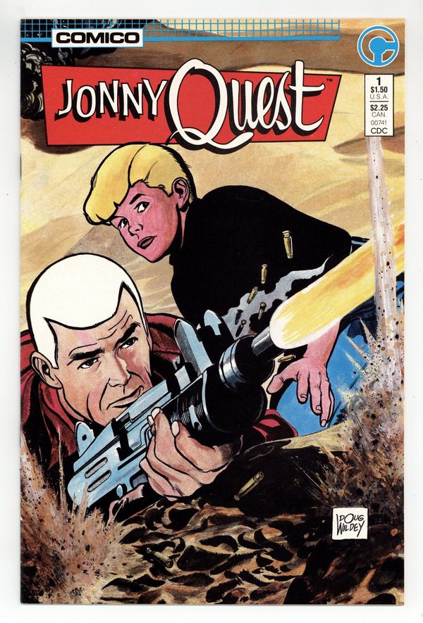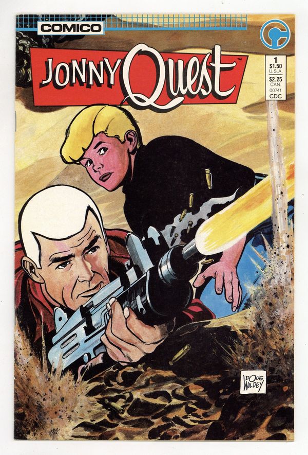 Hail, Hail, the gang's all here! Join Jonny, Bandit, Hadji, Race, and Dr. Quest on their madcap adventures as they foil whatever nefarious plot the baddies have this month. It's action adventure all over the world! This issue contains art by series creator Doug Wildey as well as pages by Steve "The Dude" Rude. The series features art by Mark Wheatley, Marc Hempel, Dave Stevens, Bill Willingham, the Pinis, and many others. A great comic series homage to one of the greatest cartoons of all time. Cover price $1.50.