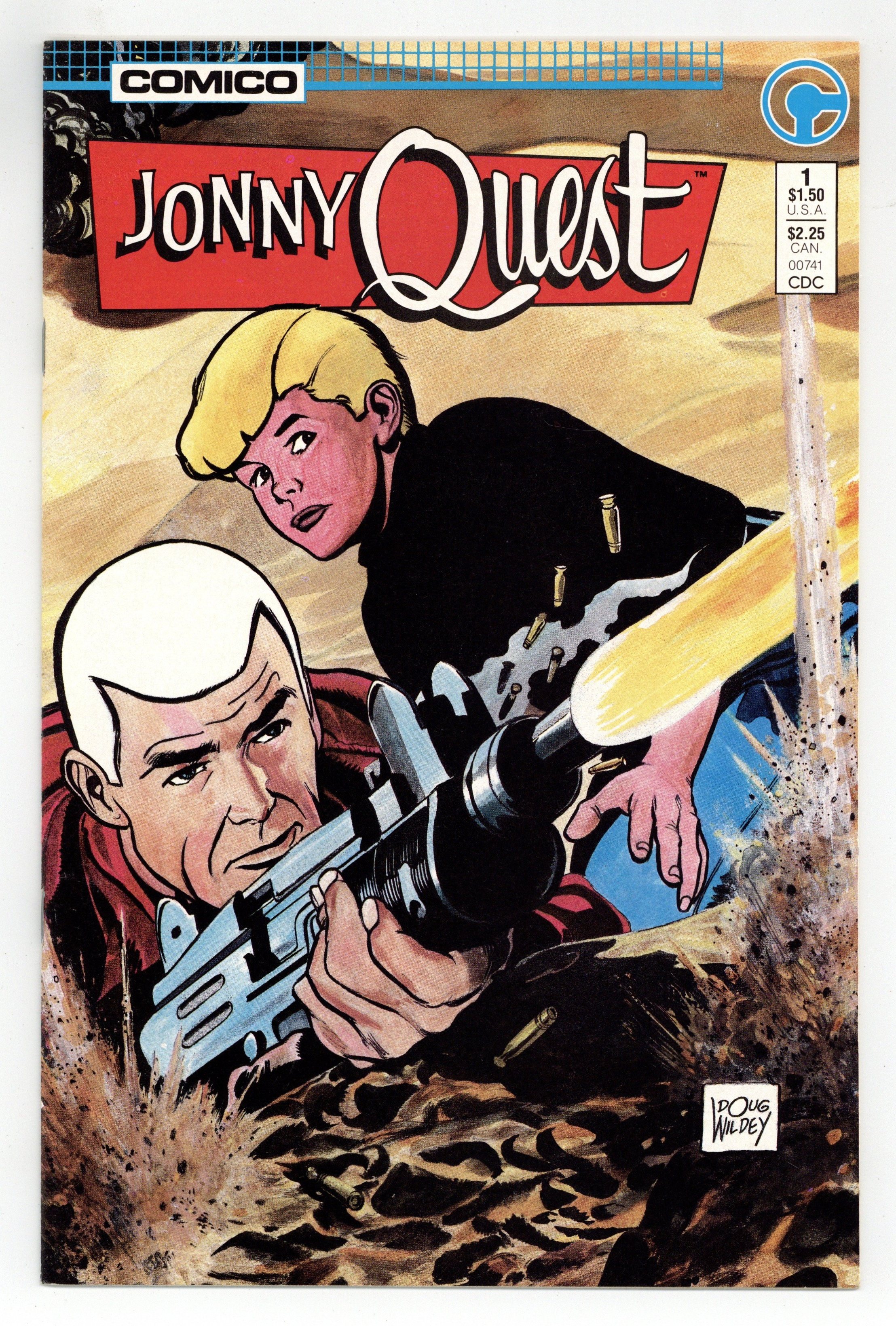 $15.00Hail, Hail, the gang's all here! Join Jonny, Bandit, Hadji, Race, and Dr. Quest on their madcap adventures as they foil whatever nefarious plot the baddies have this month. It's action adventure all over the world! This issue contains art by series creator Doug Wildey as well as pages by Steve "The Dude" Rude. The series features art by Mark Wheatley, Marc Hempel, Dave Stevens, Bill Willingham, the Pinis, and many others. A great comic series homage to one of the greatest cartoons of all time. Cover price $1.50.