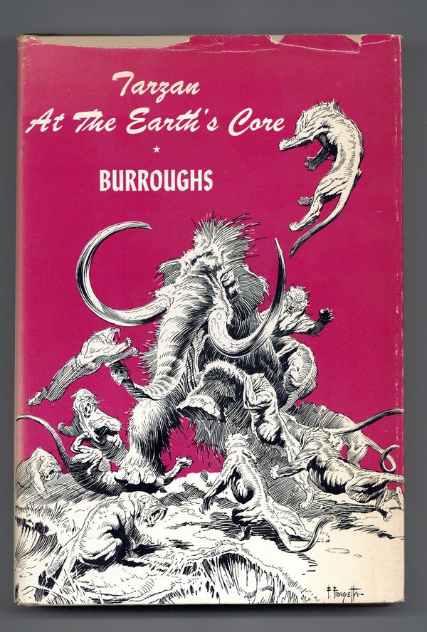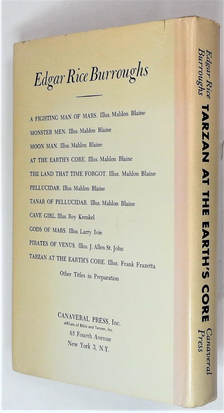 Tags: TarzanPublished Nov 1962 by Canaveral Press.$50.00First Canaveral Press Edition. Written by Edgar Rice Burroughs. Dust jacket and illustrations by Frank Frazetta. Tarzan joins Jason Gridley's dirigible expedition into Pellucidar to rescue Emperor David Innes. Hardcover, 5-1/2" x 8-1/4", 301 pages, B&W. Cover price $2.75.
